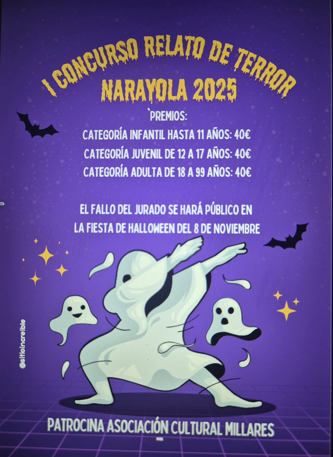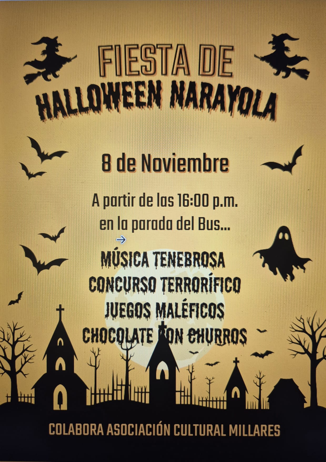 La celebración está organizada con la colaboración de la Asociación Cultural Millares, que también impulsa el I Concurso de Relatos de Terror de Narayola 2025.
