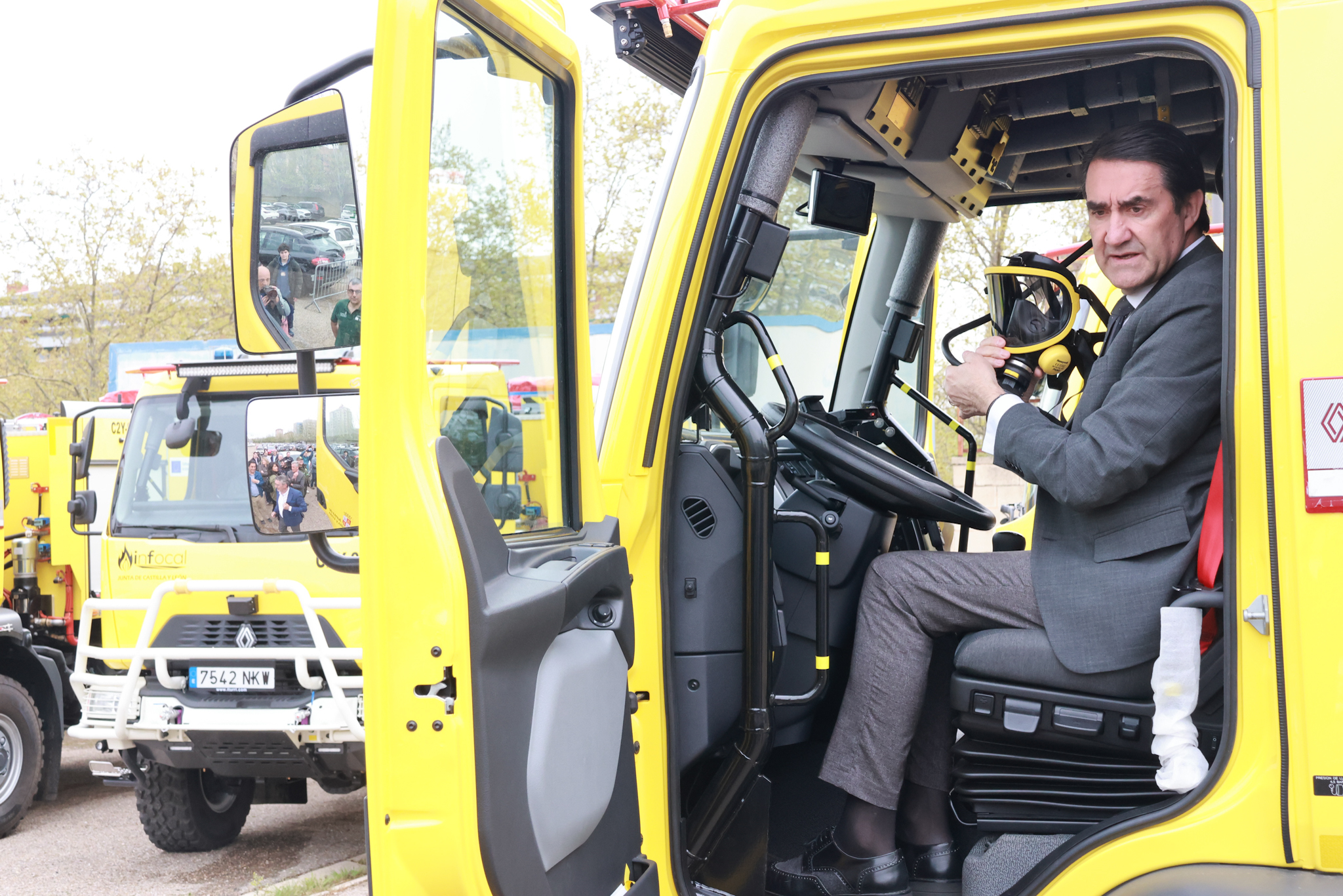 El consejero de Medio Ambiente, Vivienda y Ordenación del Territorio, Juan Carlos Suárez-Quiñones, ha formalizado hoy la recepción de 12 nuevas autobombas de 4.000 litros de capacidad. Estos vehículos suponen el primer tramo de un lote de 27 unidades que se integrarán en el Operativo INFOCAL a lo largo de este año, elevando el grado de renovación de la flota propia al 95 %.