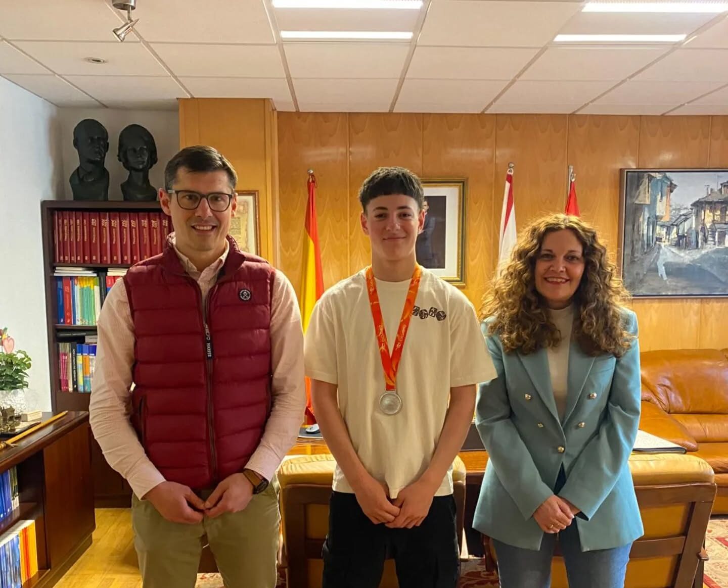 Durante el encuentro, Enol Torre lució con orgullo la medalla de plata que le acredita como uno de los mejores especialistas del país en su disciplina. Como muestra de agradecimiento y orgullo local, la alcaldesa le hizo entrega de un libro sobre la historia de Bembibre.