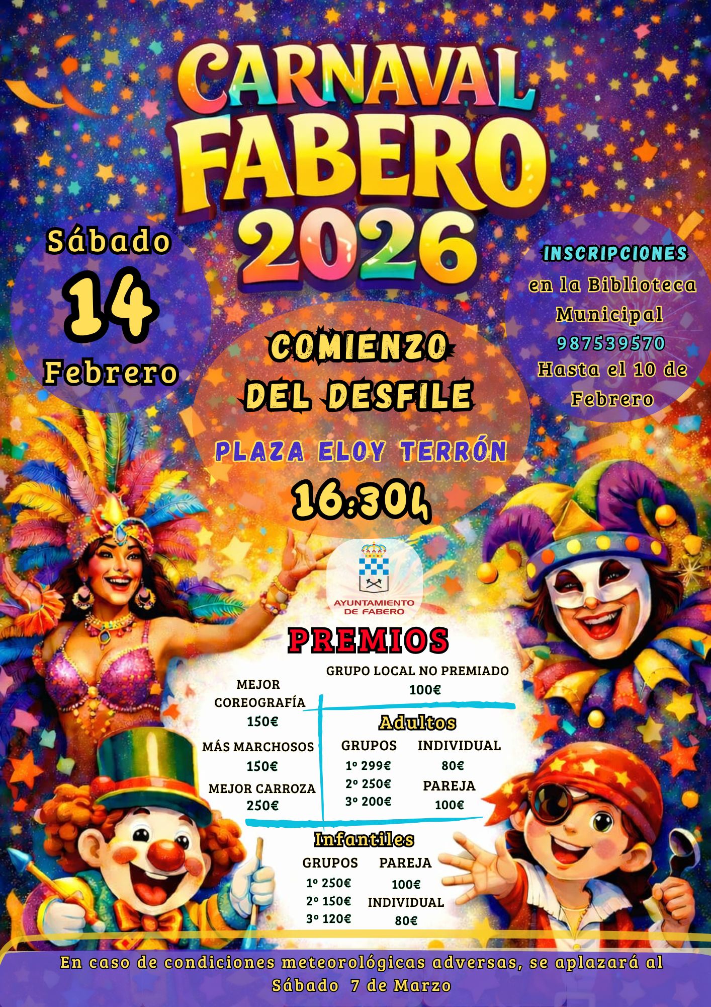 La localidad de Fabero ultima los detalles para celebrar una de sus fiestas más esperadas y participativas: el Carnaval Fabero 2026. El evento central, un gran desfile comunitario lleno de música, disfraces y carrozas, tendrá lugar el sábado 14 de febrero, con salida a las 16:30 horas desde la Plaza Eloy Terrón. El Ayuntamiento ha establecido un atractivo plan de premios que supera los 2.000 euros en total, destinado a incentivar la creatividad y la participación de niños y adultos.