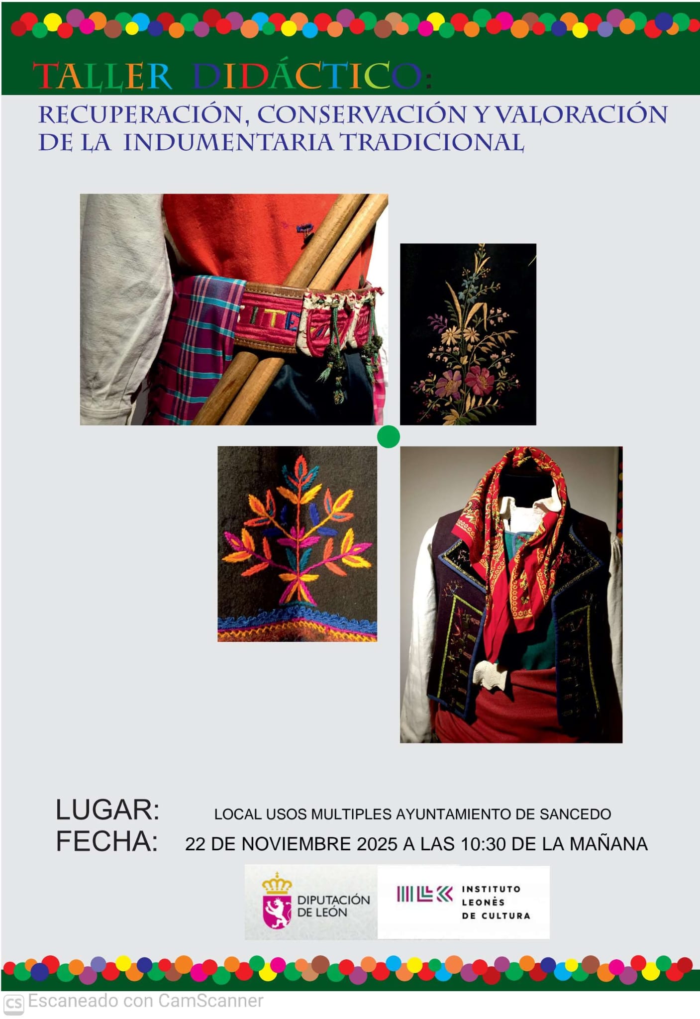 El próximo 22 de noviembre, a las 10:30 de la mañana, el Local de Usos Múltiples del Ayuntamiento de Sancedo acogerá un taller práctico dedicado a la recuperación y conservación de la indumentaria tradicional. La iniciativa está dirigida a todas aquellas personas que posean trajes típicos y deseen conocer las técnicas adecuadas para mantenerlos en perfecto estado, así como para aprender a colocarlos de manera correcta.