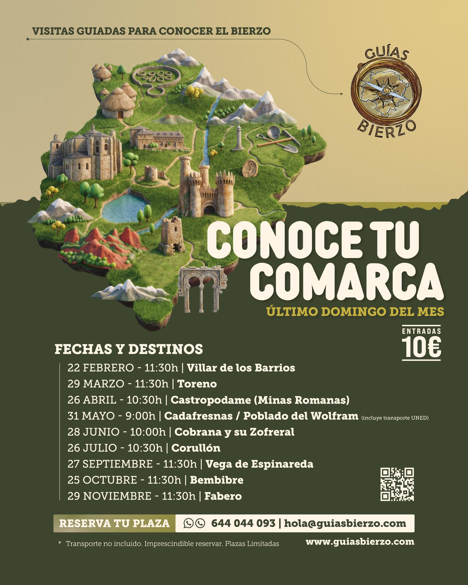 - Reservas e información: Las plazas son limitadas. Las entradas pueden adquirirse en la web de Guías Bierzo: https://guiasbierzo.com/producto/conoce-tu-comarca-bierzo/. Para consultas: hola@guiasbierzo.com.