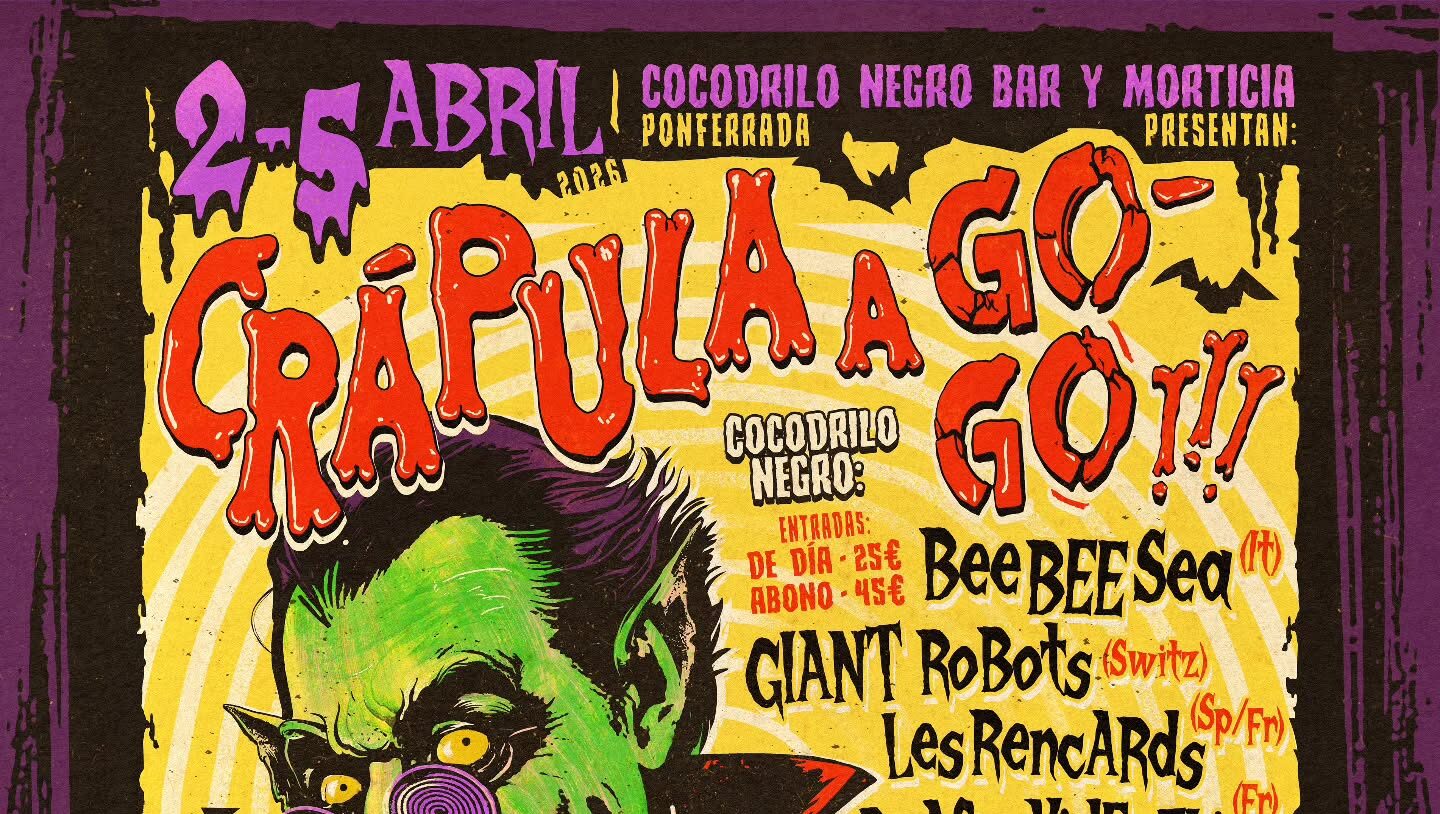 La distorsión, el reverb y los colmillos afilados tomarán las calles de Ponferrada durante el próximo puente de Semana Santa. Del 2 al 5 de abril, dos de los templos del rock en la ciudad, Cocodrilo Negro Bar y Morticia, unen sus fuerzas para dar vida a una nueva edición de El Crápula Festival.