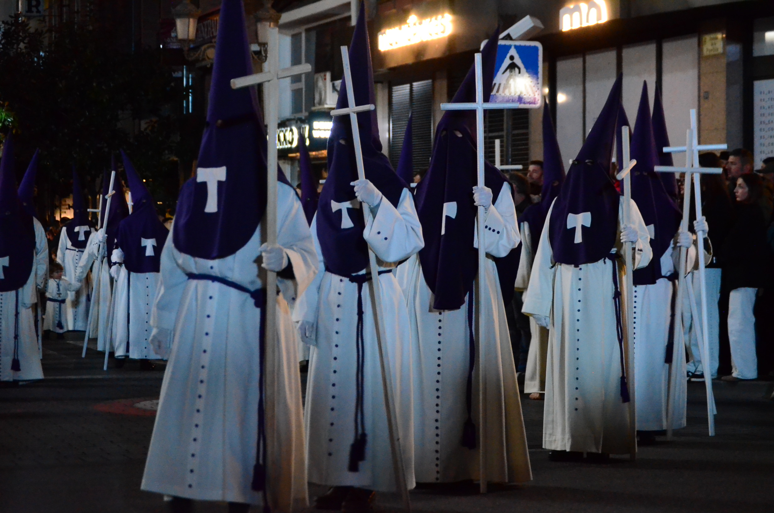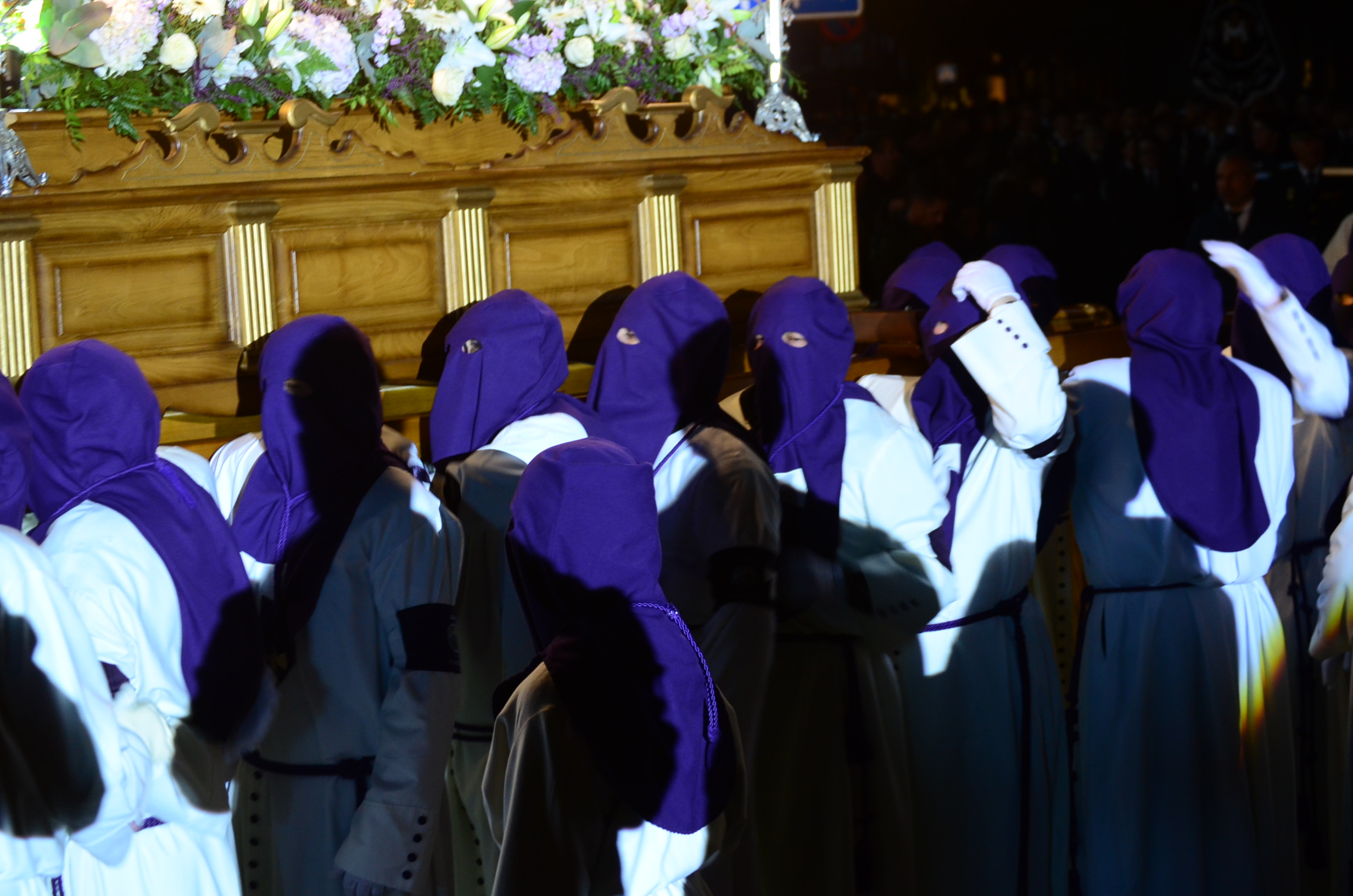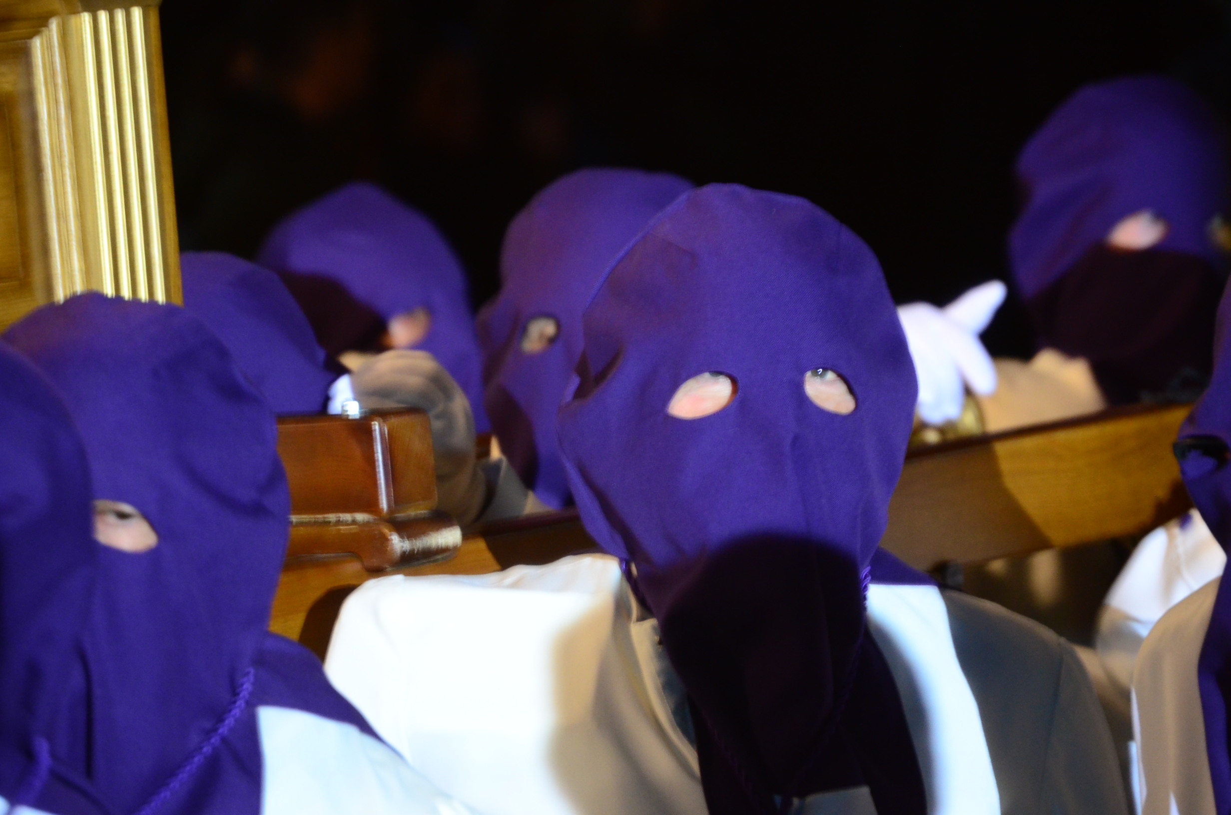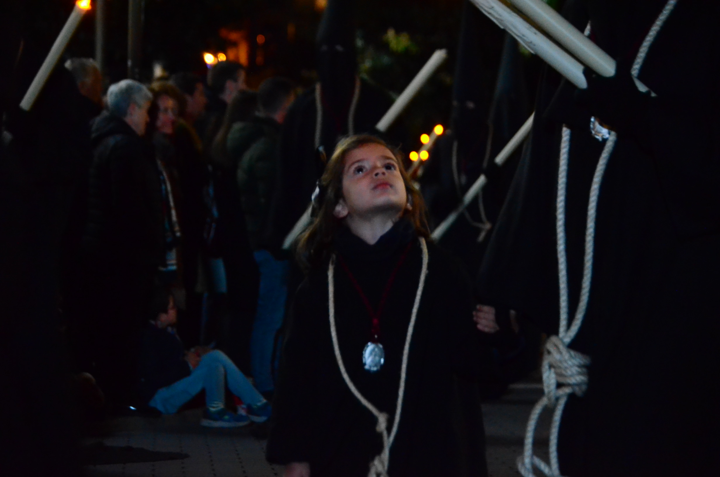 Bajo el manto de la noche y apenas iluminada por el parpadeo de los hachones, la ciudad ha enmudecido para dejar paso al sobrio desfile de los cofrades. El único sonido que rompe la calma es el rítmico golpear de las varas contra el empedrado y el murmullo de los pasos de los cargadores, que portan con devoción la imagen de Jesús el Nazareno por las vías más emblemáticas de la capital berciana.