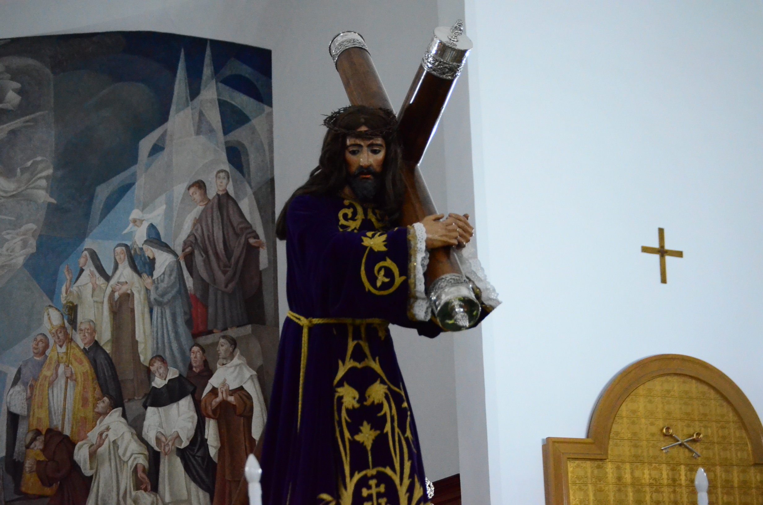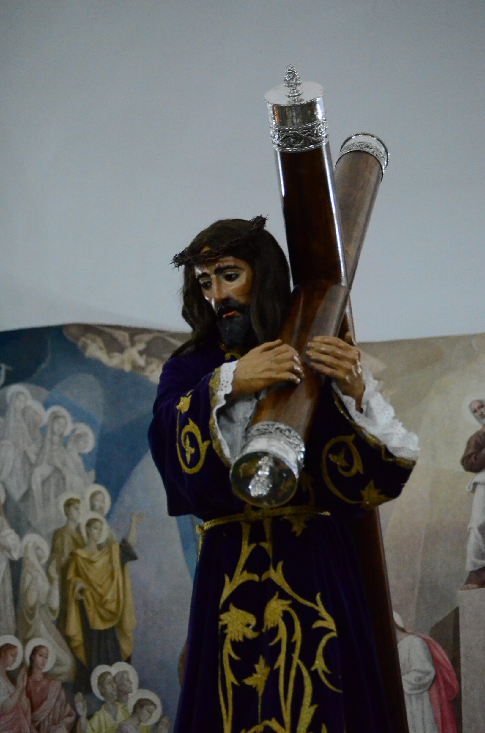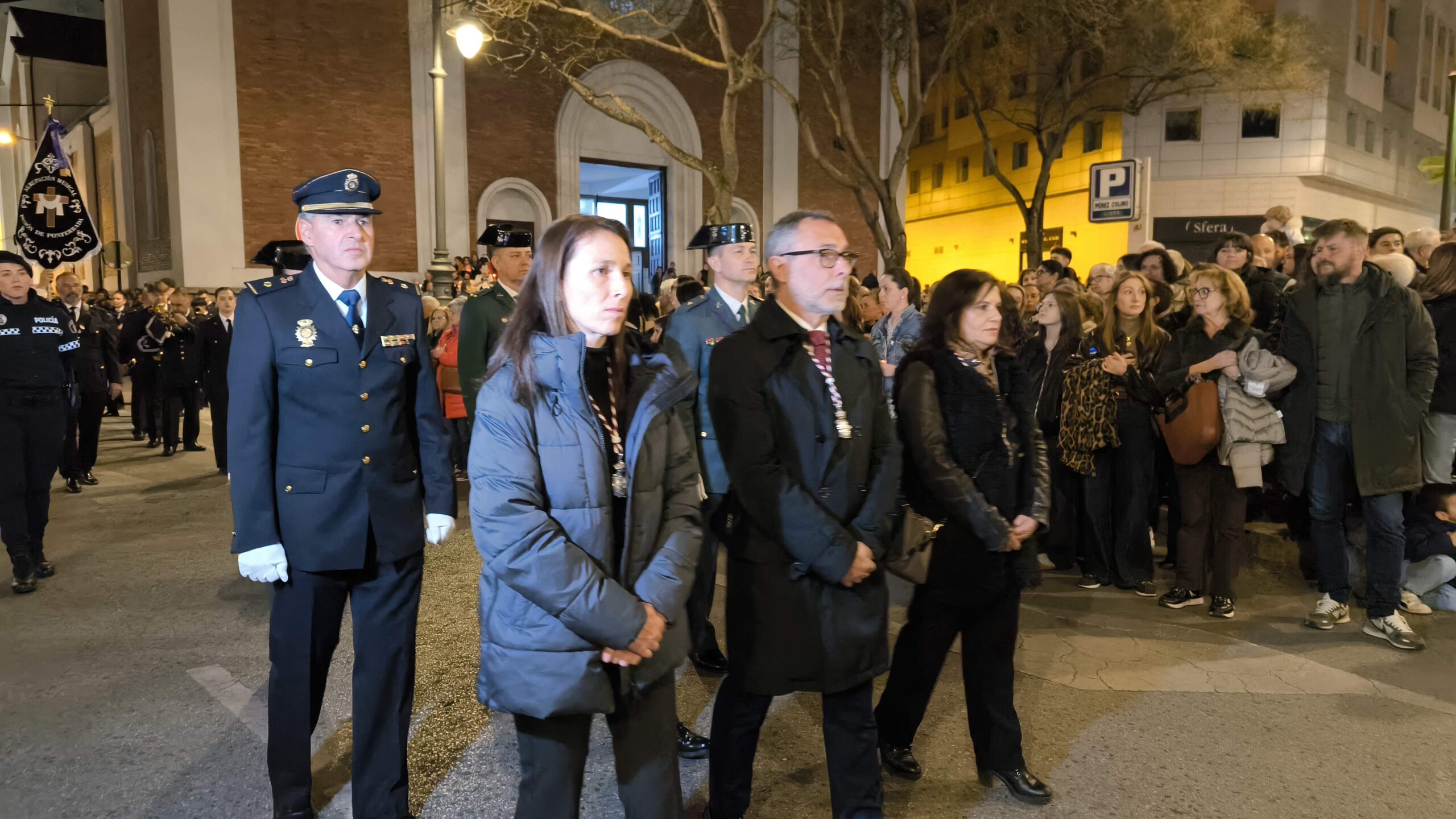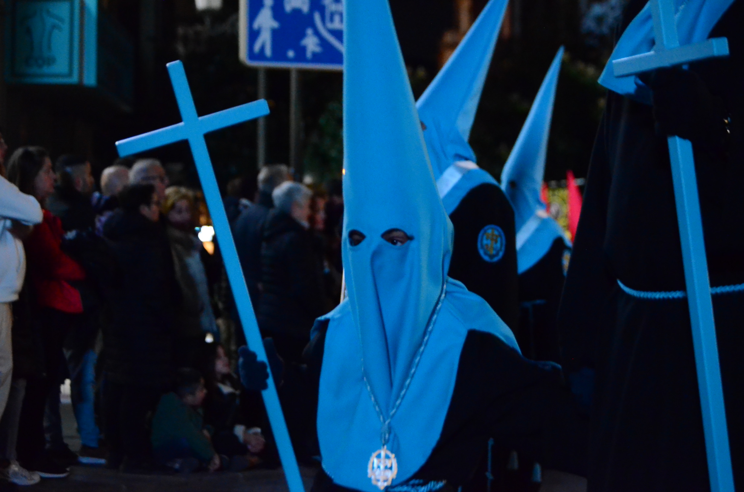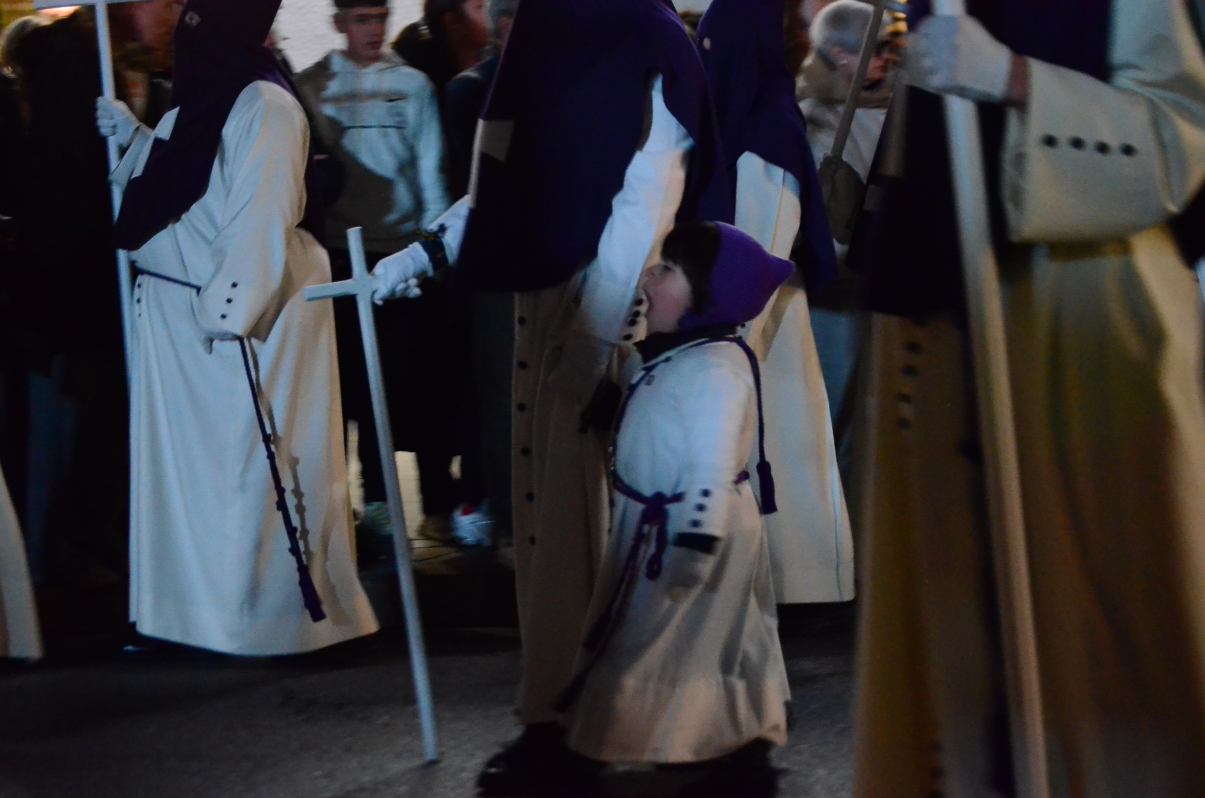 Bajo el manto de la noche y apenas iluminada por el parpadeo de los hachones, la ciudad ha enmudecido para dejar paso al sobrio desfile de los cofrades. El único sonido que rompe la calma es el rítmico golpear de las varas contra el empedrado y el murmullo de los pasos de los cargadores, que portan con devoción la imagen de Jesús el Nazareno por las vías más emblemáticas de la capital berciana.