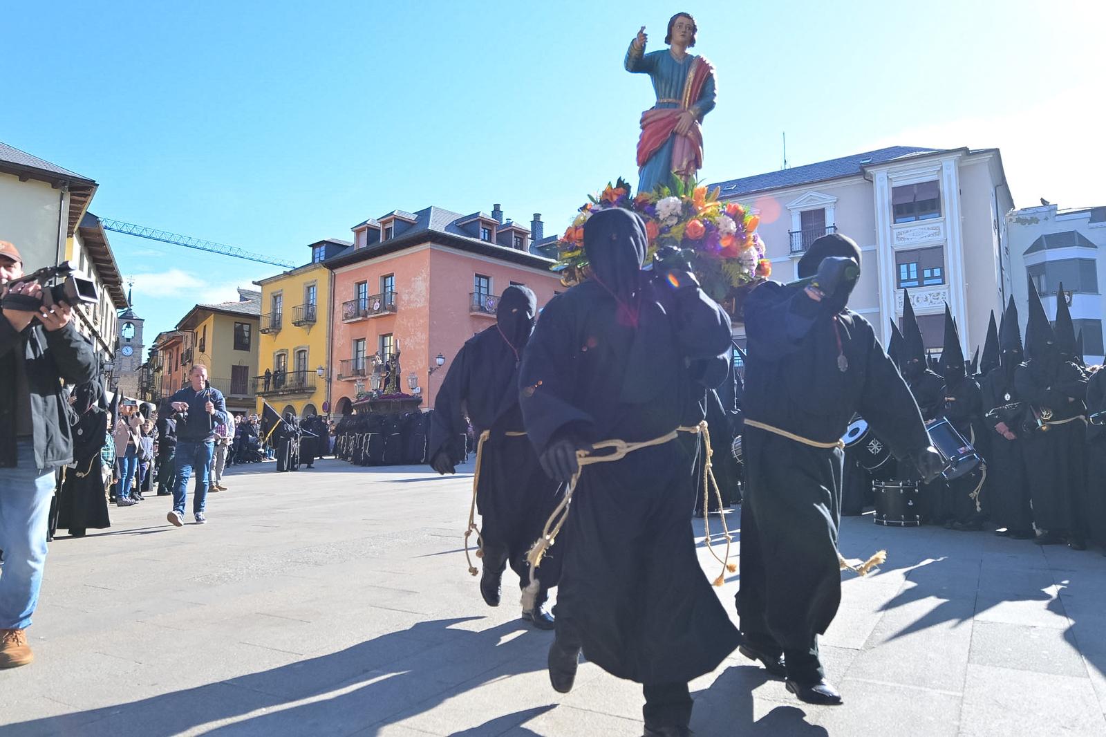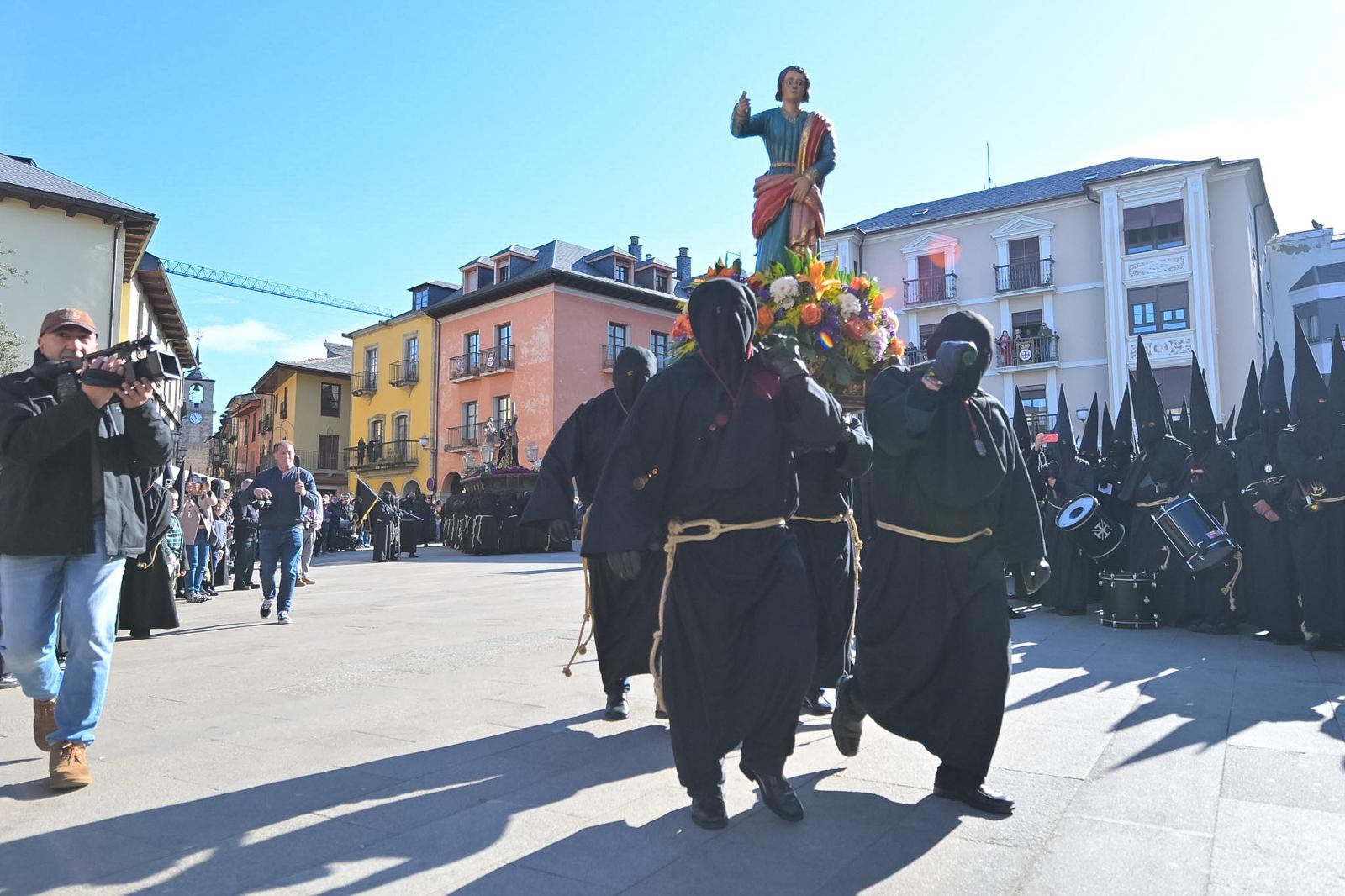 La mañana del Viernes Santo ha vuelto a regalar a la capital del Bierzo una de sus estampas más icónicas y queridas: la Procesión del Encuentro. Bajo un cielo que ha respetado el solemne desfile, la ciudad se ha paralizado para asistir al diálogo mudo entre las imágenes, en un acto que combina la devoción religiosa con una coreografía popular perfectamente coordinada.