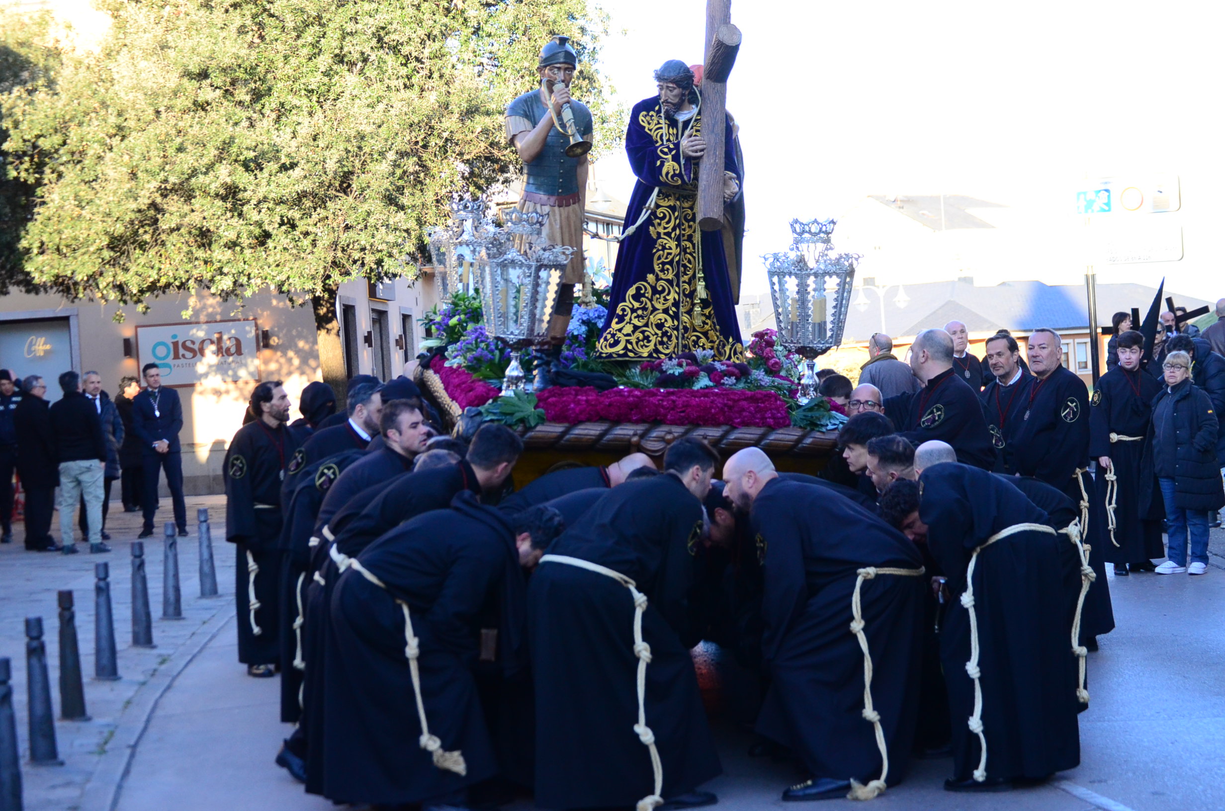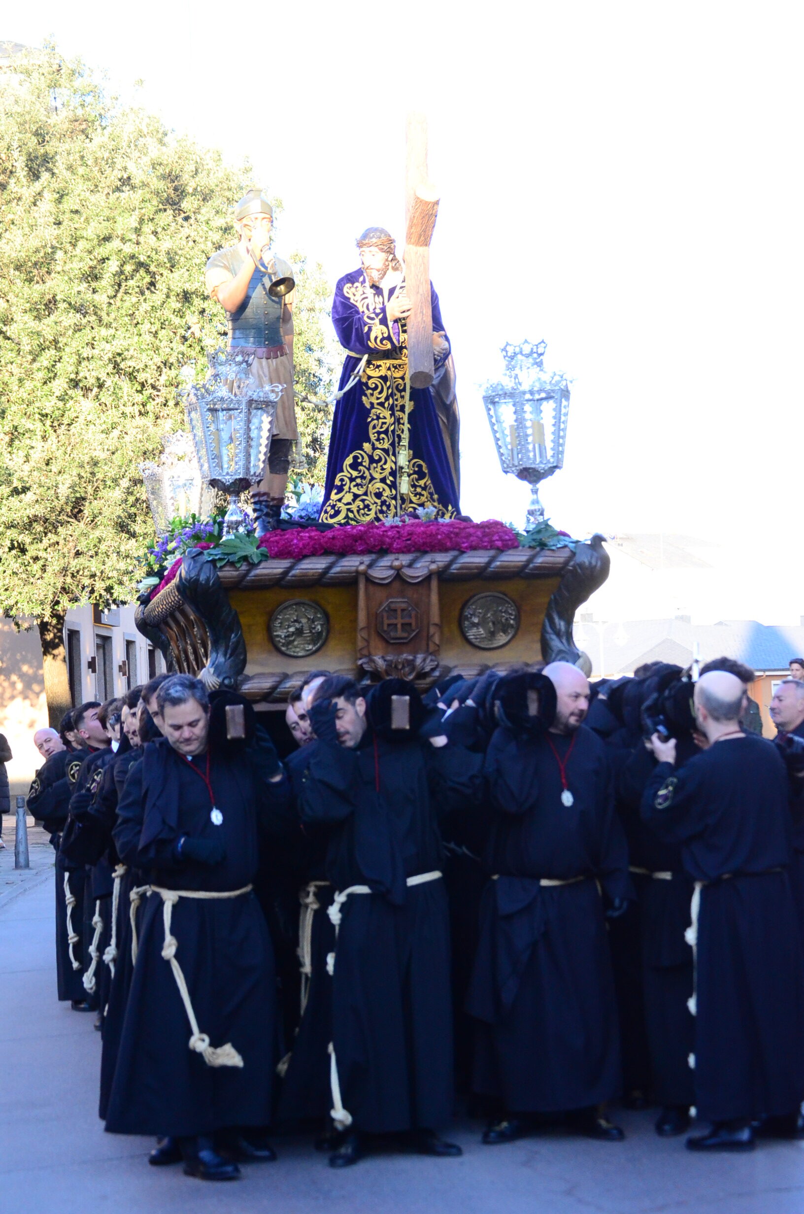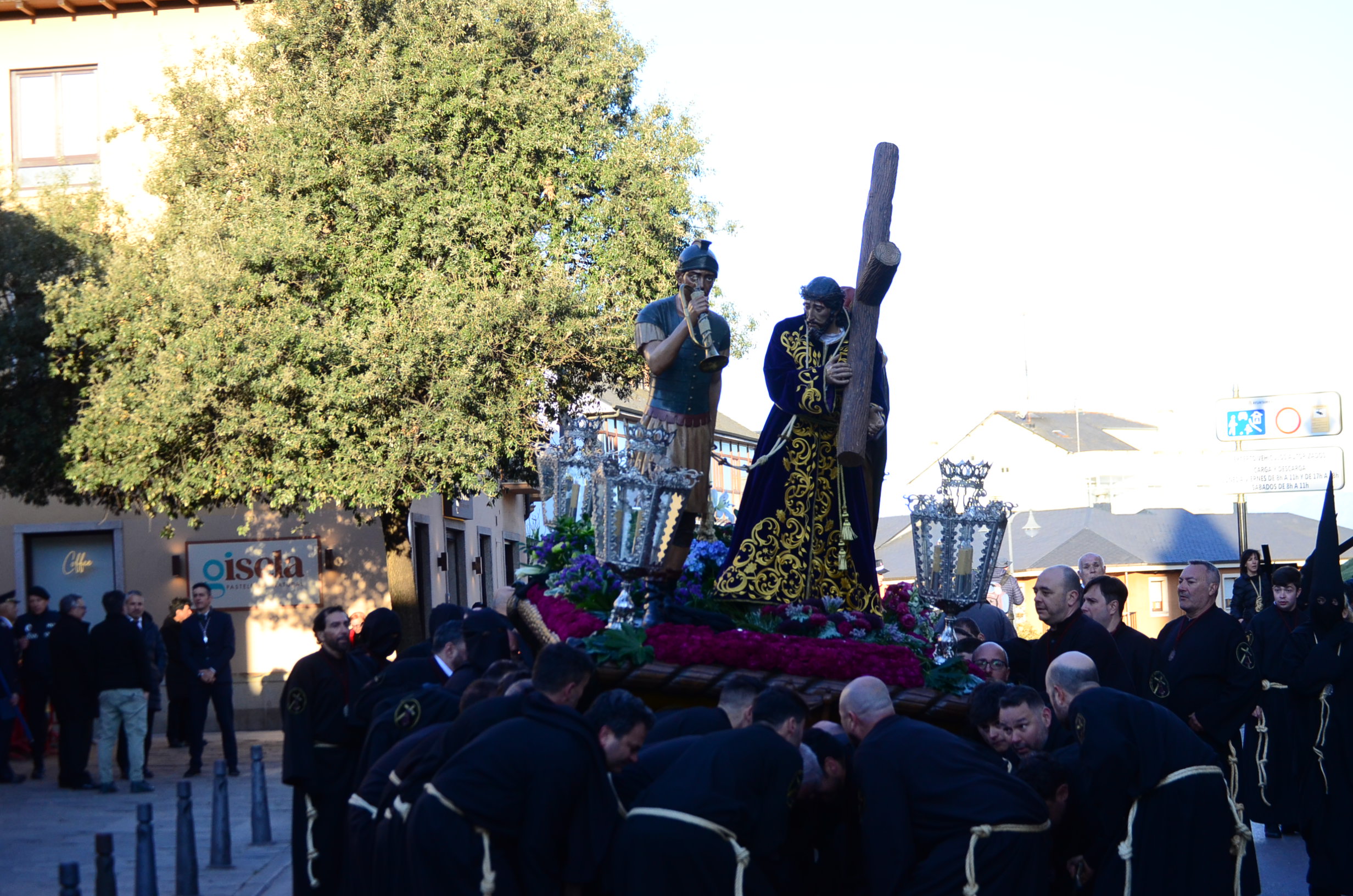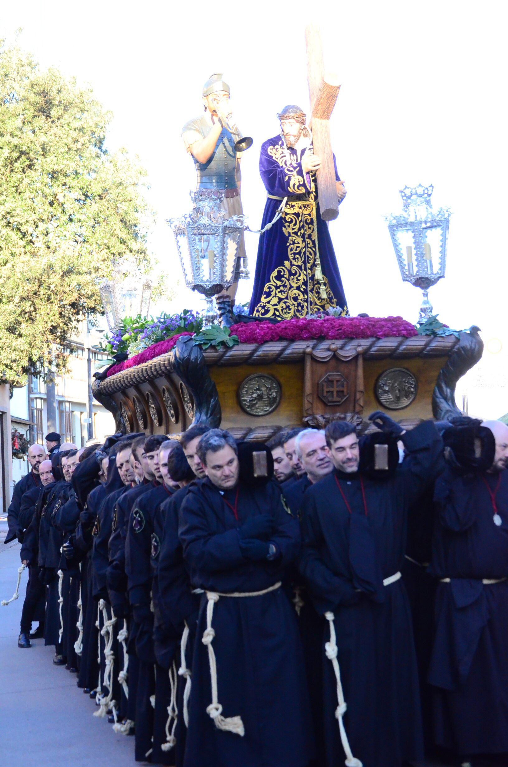 - El Nazareno: Imponente en su avance por las calles empedradas.