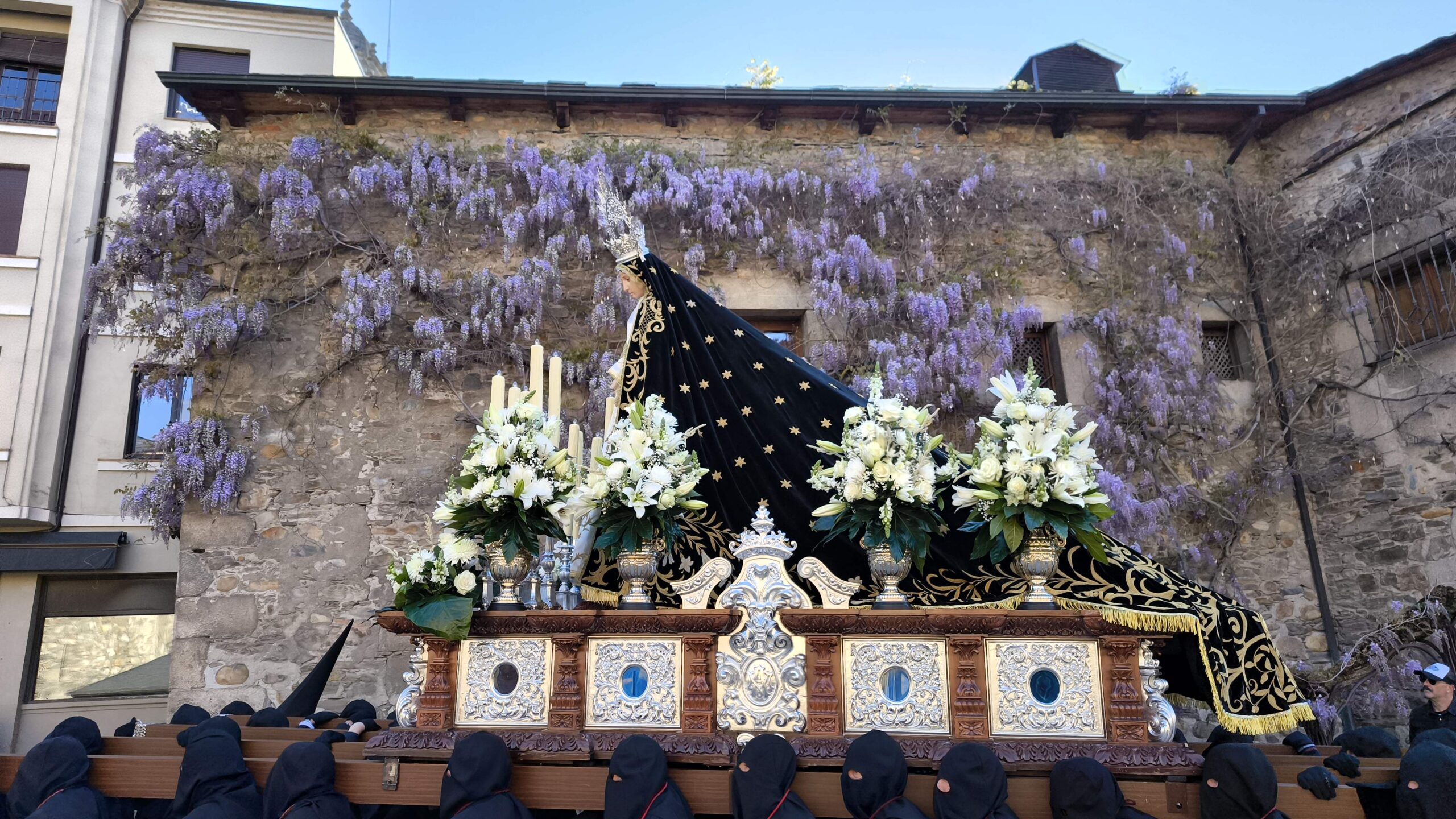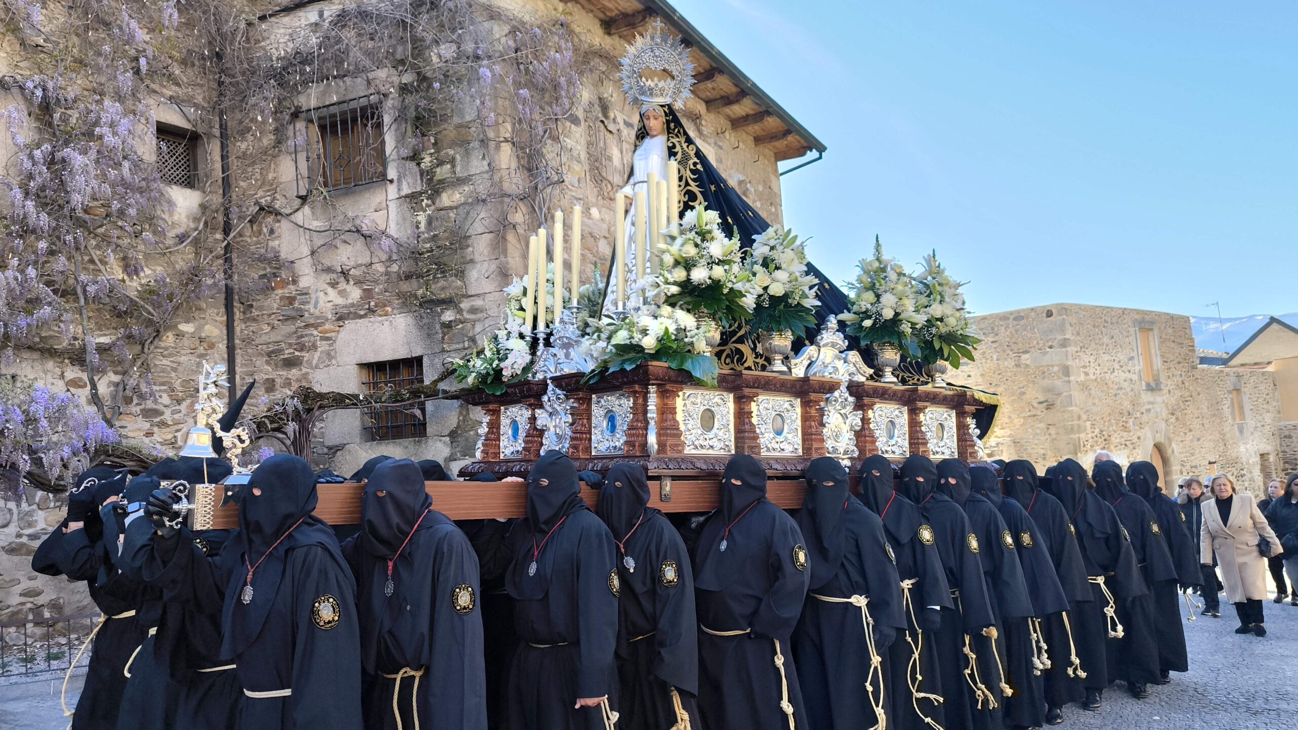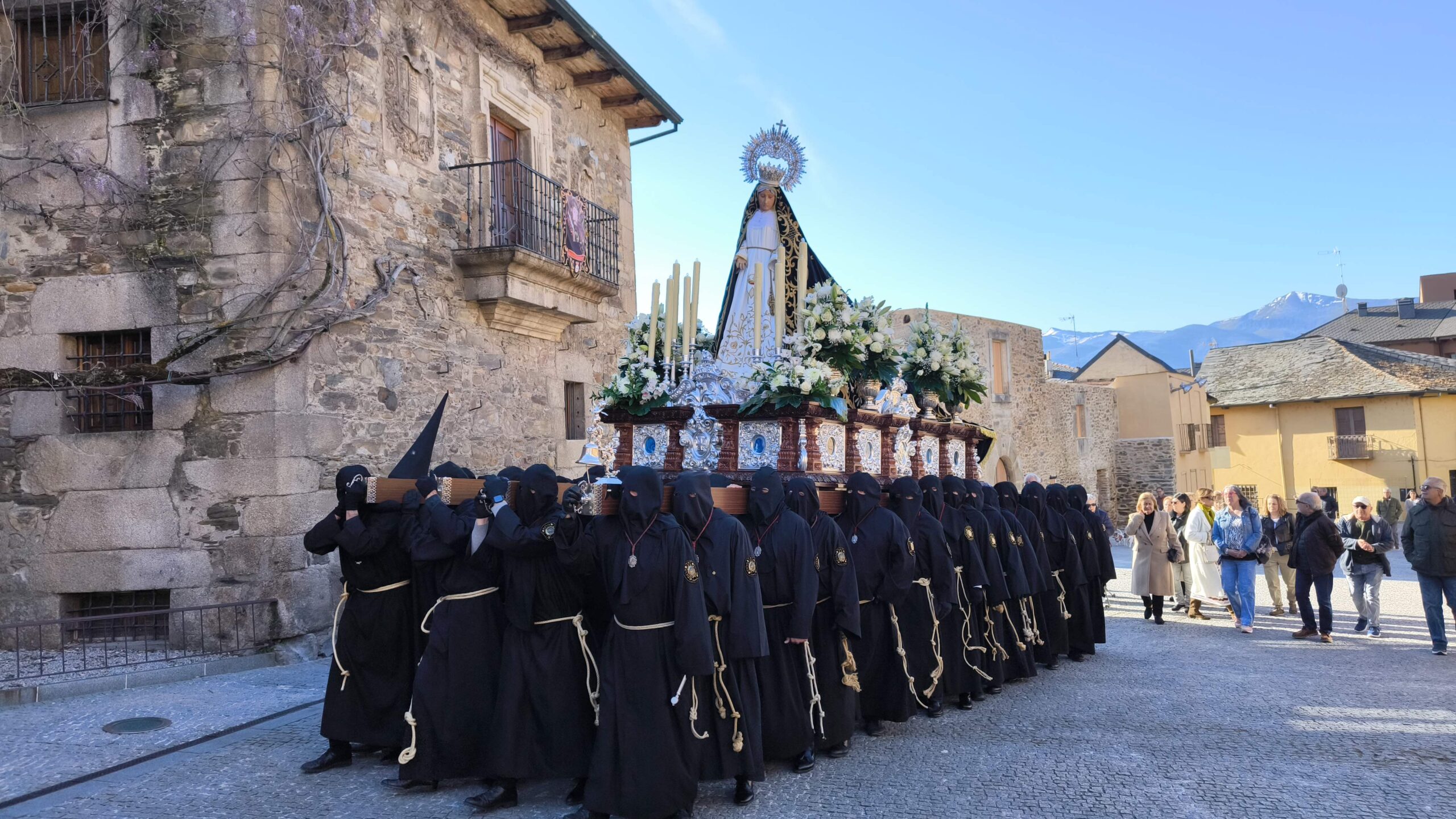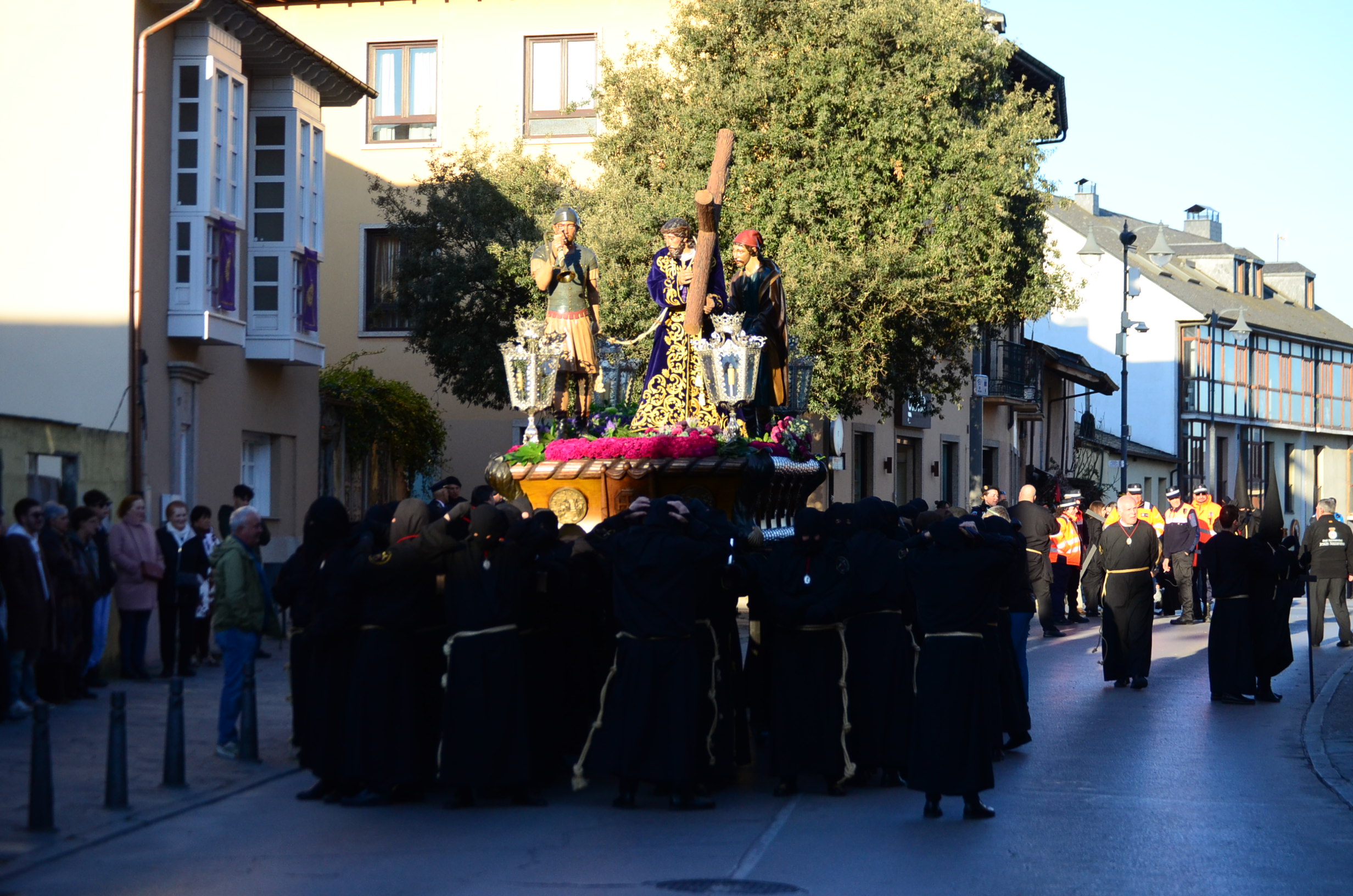 - El Nazareno: Imponente en su avance por las calles empedradas.