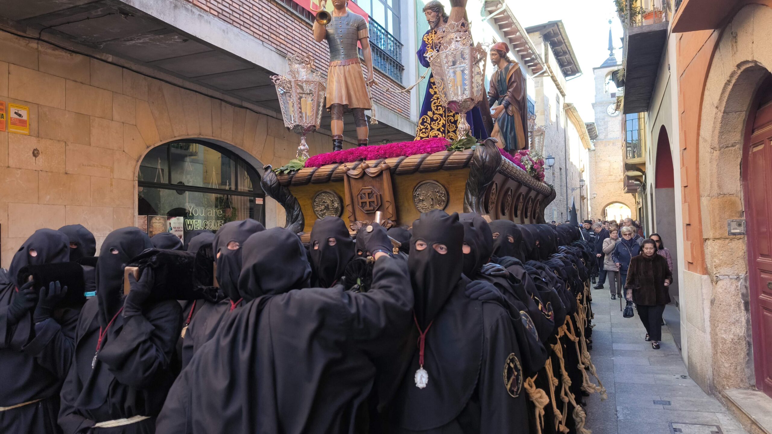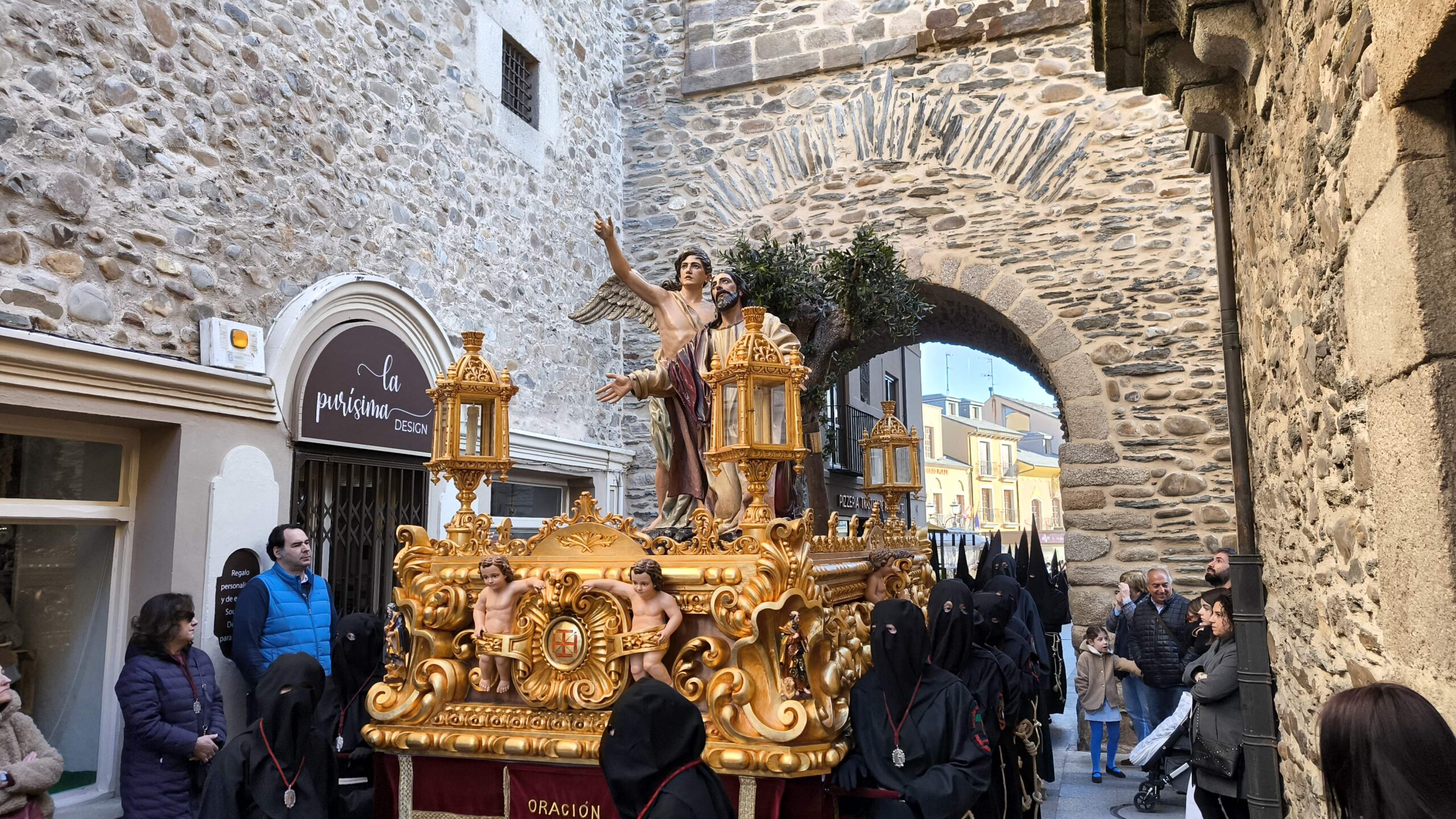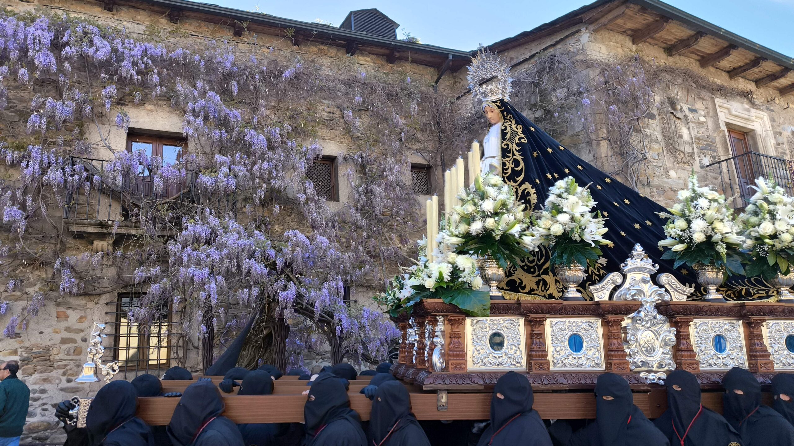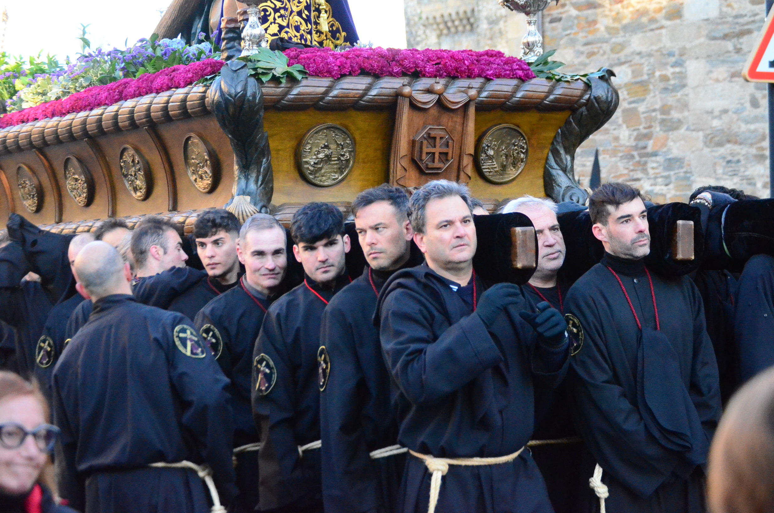 - El Nazareno: Imponente en su avance por las calles empedradas.
