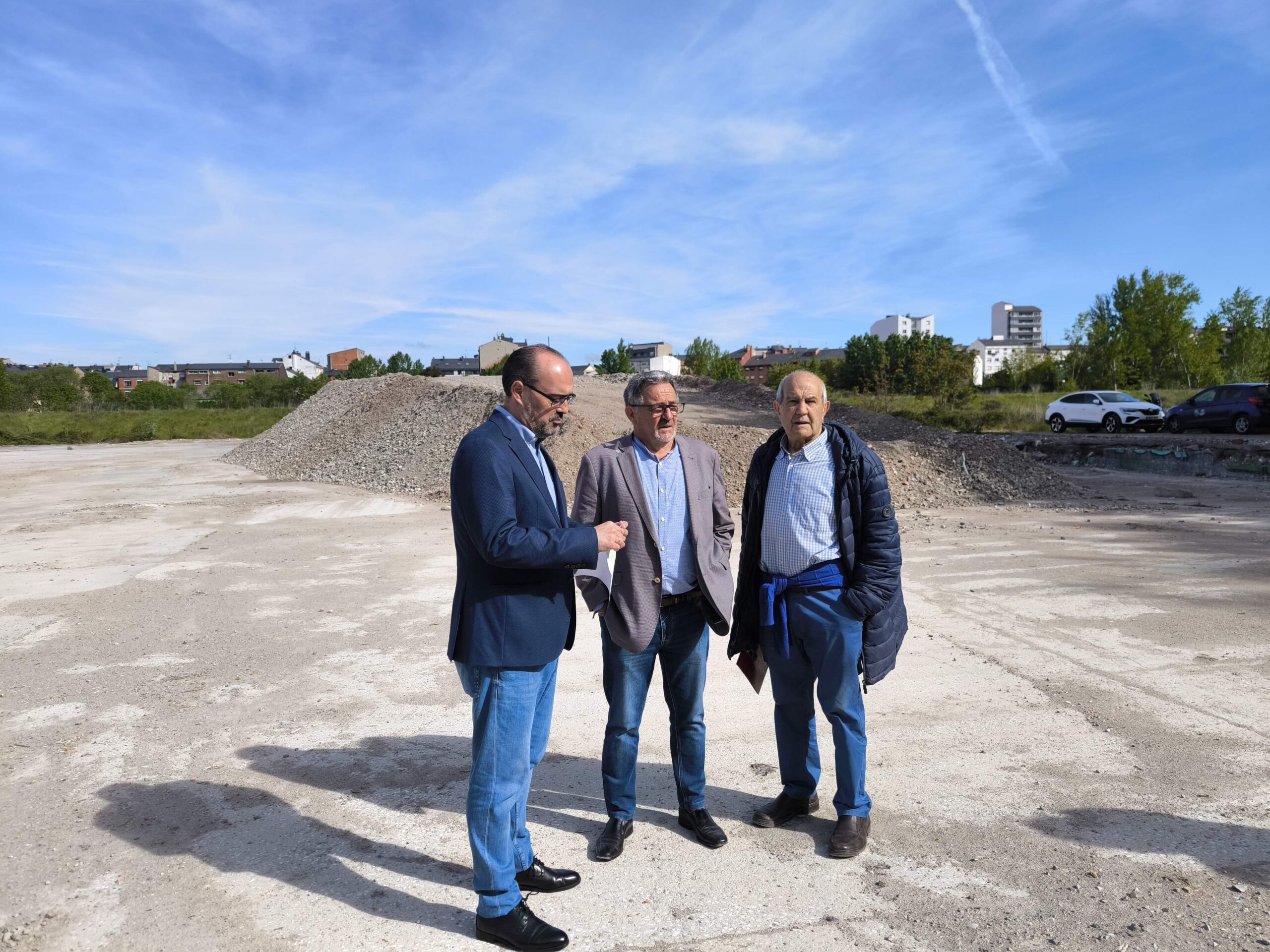 El alcalde de Ponferrada, Marco Morala, y Francisco Pascual Bello, representante del Grupo Población, han comparecido en la finca de Flores del Sil donde se ubicaba una antigua fábrica de bloques para anunciar la finalización de las tareas de limpieza del terreno.
