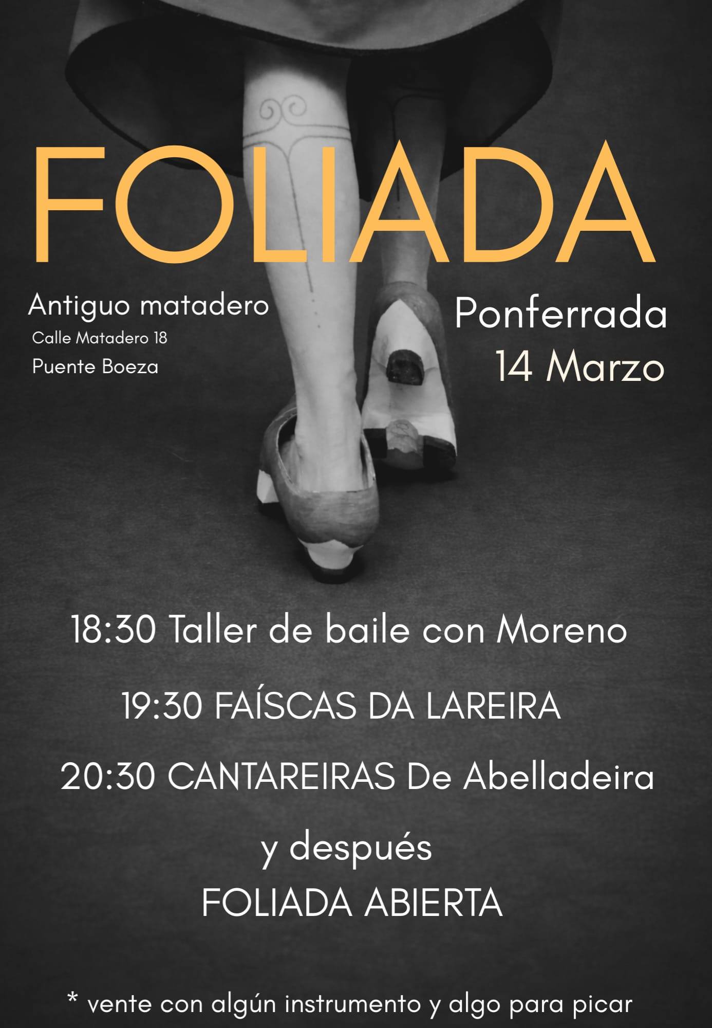 Ponferrada se prepara para una jornada de música y tradición el próximo 14 de marzo en el Antiguo Matadero, ubicado en la Calle Matadero, 18, en la localidad de Puente Boeza. La “Foliada”, comenzará a las 18:30 horas y promete hacer vibrar a los asistentes con lo mejor del folclore gallego y berciano.