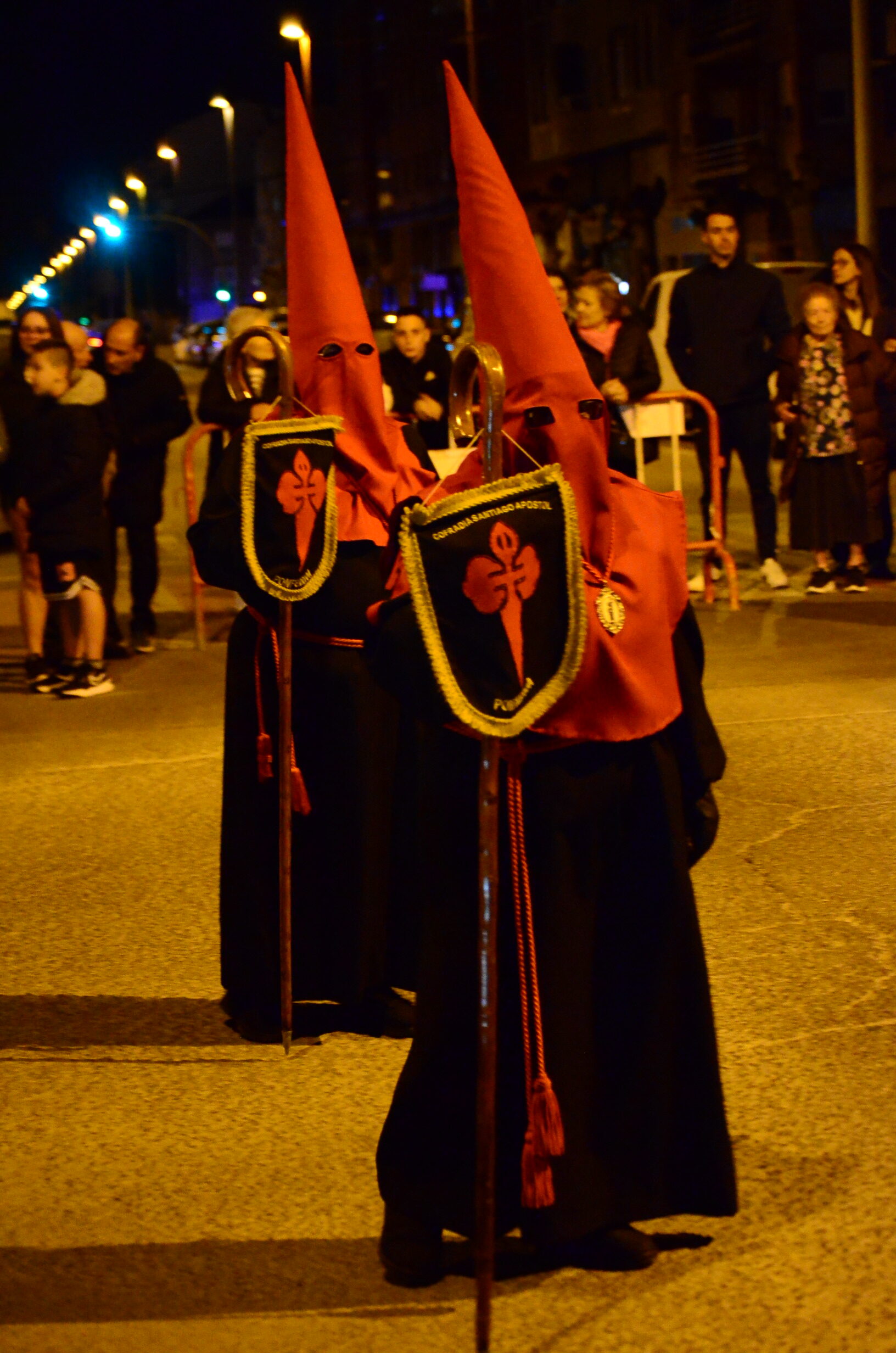 Hoy martes a las 22:00 horas ha recorrido el barrio de Flores del Sil la Procesión del Santo Cristo del Camino. Este desfile procesional, organizado por la Cofradía de Santiago Apóstol, portó los pasos de: