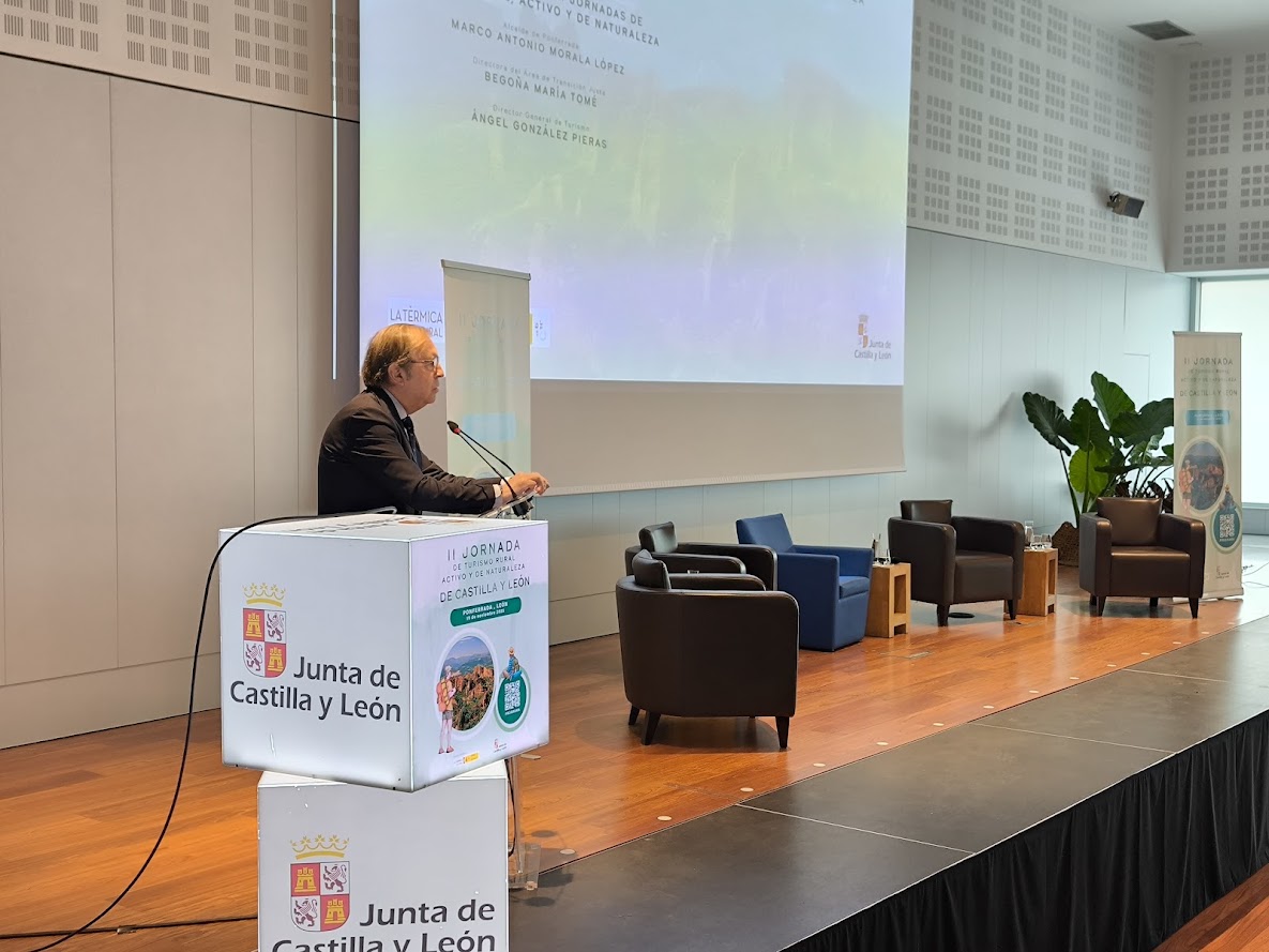El director general de Turismo, Ángel González, ha participado hoy en la II Jornada de Turismo Rural, Activo y de Naturaleza que se desarrolla en Ponferrada, León, con la ponencia inaugural bajo el título ‘La oferta complementaria crea destino’. Las jornadas están organizadas por la Consejería de Cultura, Turismo y Deporte en colaboración con La Térmica Cultural y el Ayuntamiento de Ponferrada.