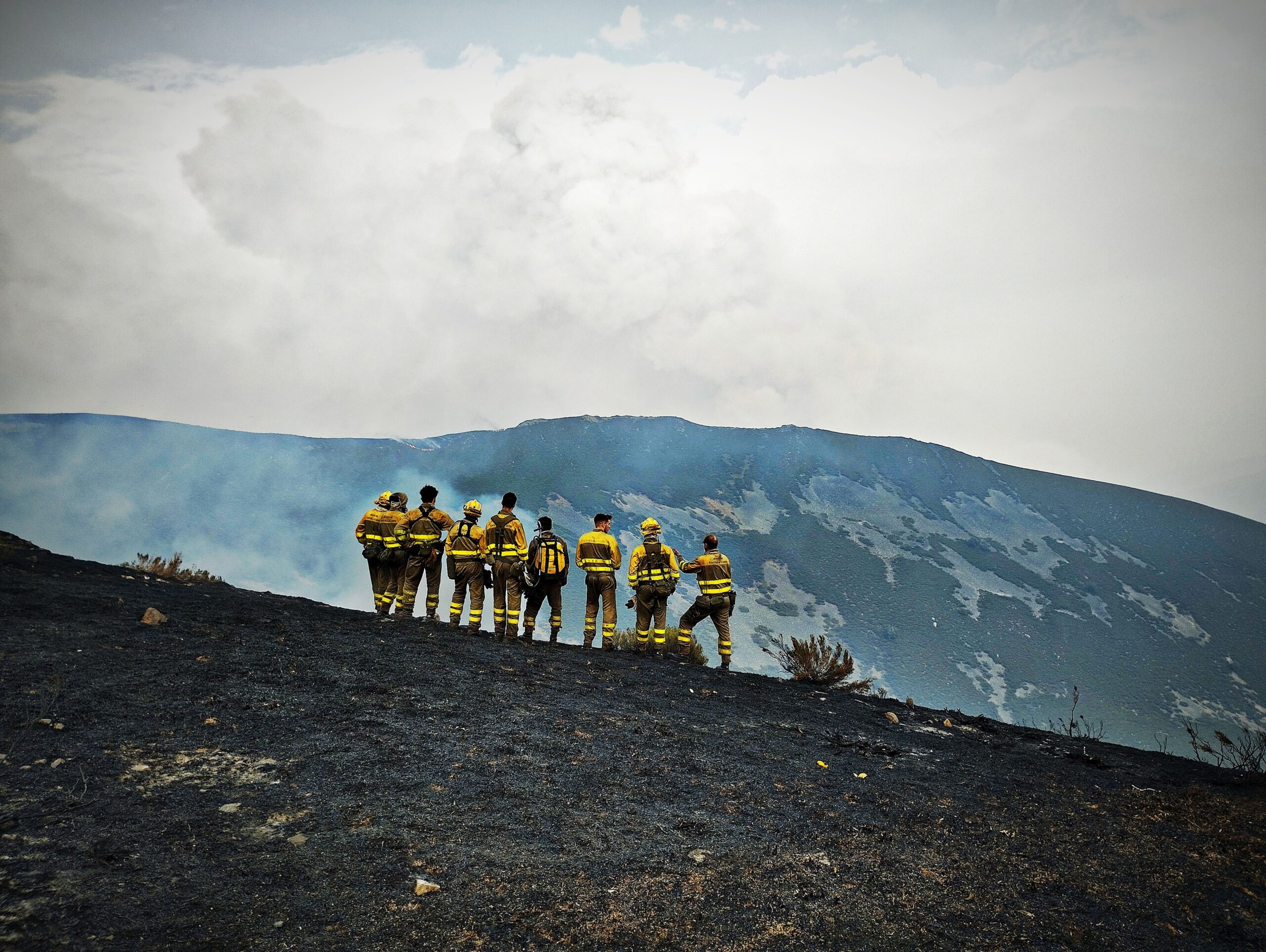- Diego Fernández Martín, en la categoría ‘Durante’, por ‘Sudor, lágrimas y ceniza’, una fotografía que refleja el esfuerzo y la mirada exhausta de una hilera de brigadistas durante las labores de extinción.
