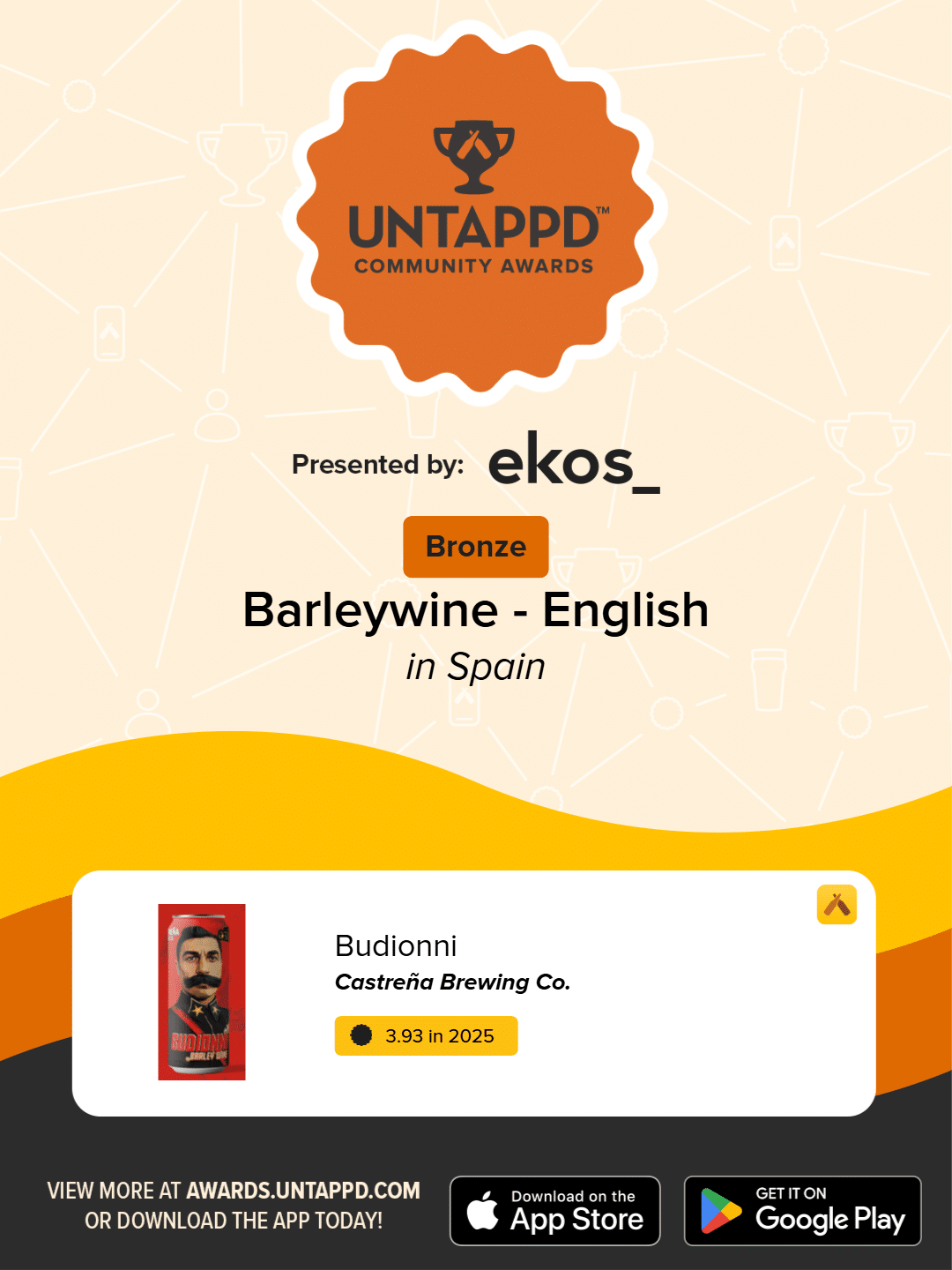 Los Untappd Community Awards son una celebración mundial de lo mejor de la cerveza artesanal, seleccionada a partir de los millones de valoraciones que los usuarios de Untappd generan a lo largo del año. Untappd Su objetivo es reconocer no solo las IPA y las stouts de barrica —que suelen dominar los rankings con puntuaciones muy altas— sino también las mejores cervezas en todos los estilos posibles.