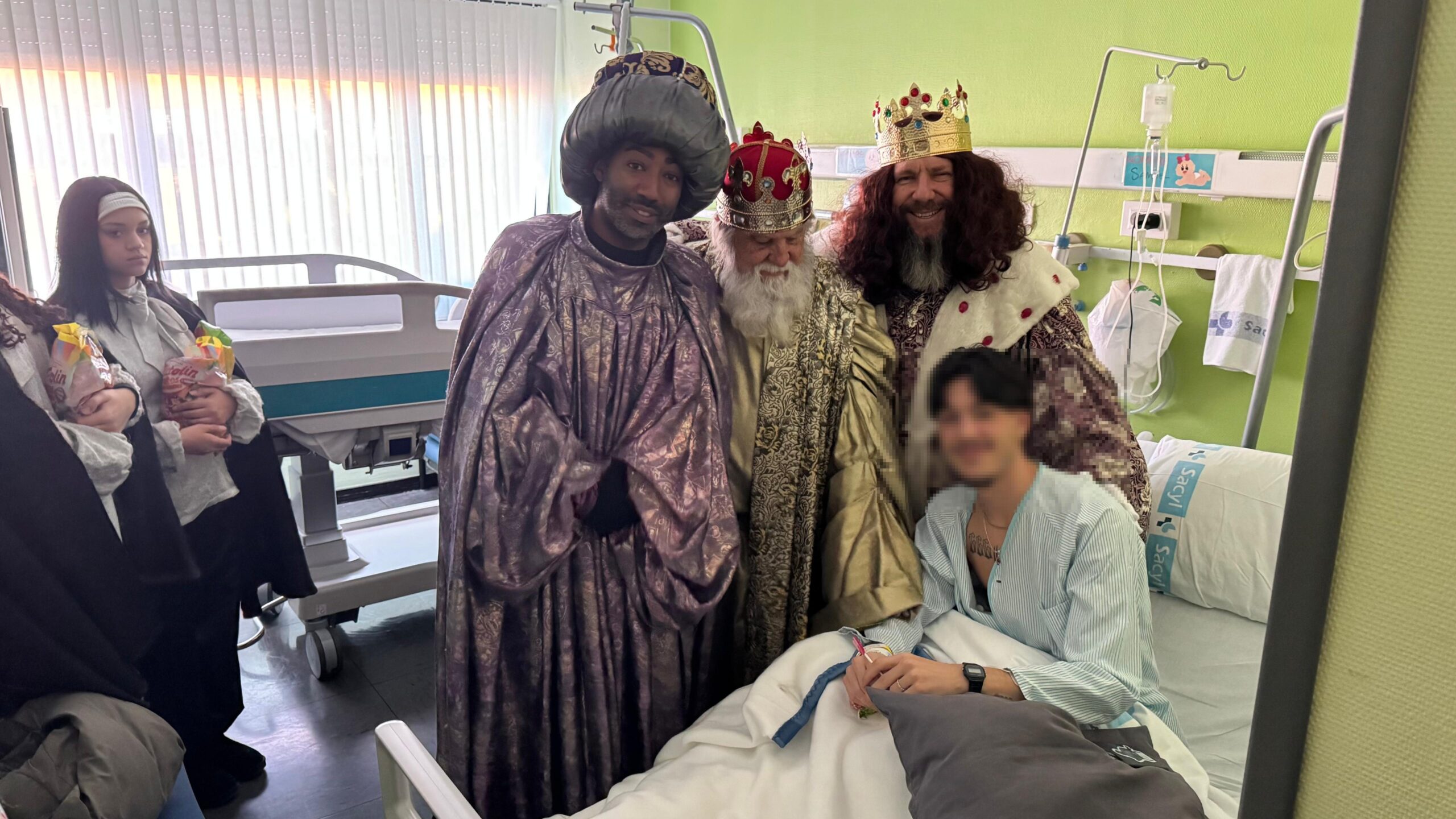 Un año más, la magia de la Navidad llegó a las habitaciones del Hospital El Bierzo de la mano de Sus Majestades los Reyes Magos de Oriente. Melchor, Gaspar y Baltasar, acompañados por sus pajes, recorrieron este lunes las instalaciones del centro sanitario, llevando sonrisas, ánimo y pequeños detalles a niños ingresados en Pediatría y a pacientes adultos de distintas unidades.