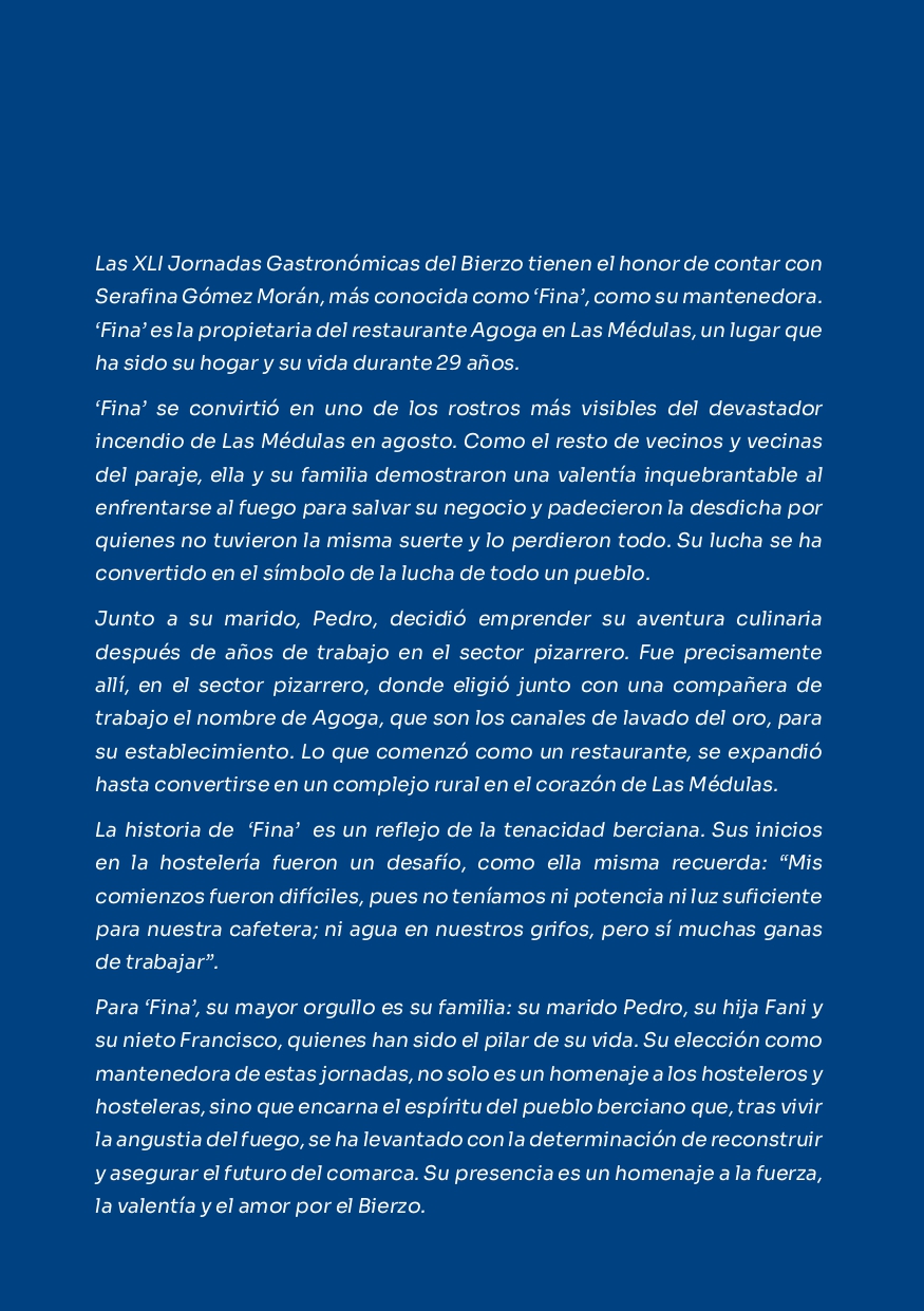 - La mantenedora de esta edición es Serafina “Fina” Gómez Morán, del restaurante Agoga en Las Médulas.