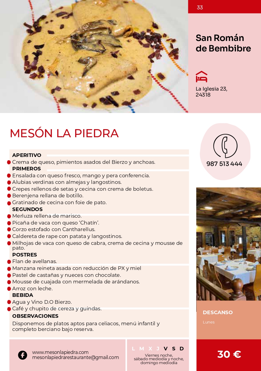 Serán 24 establecimientos gastronómicos del Bierzo los que ofrecerán menús especiales con productos locales.