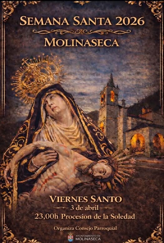 Molinaseca se viste de luto y devoción este Viernes Santo. El próximo 3 de abril, a las 23:00 horas, el silencio solo se verá interrumpido por los pasos de la Procesión de la Soledad, uno de los actos más emotivos de la Semana Santa en la comarca.