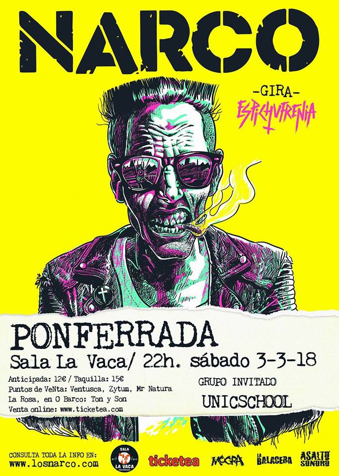Tras tres años girando con “dios te odia” Narco reaparece con “Espichufrenia”, el que será su séptimo disco de estudio y sin duda la consolidación de un sonido en el que los elementos electrónicos y de otras músicas ya no son una simple influencia si no que se integran en la espina dorsal del álbum. El disco además cuenta con unas sorprendentes colaboraciones entre las que destacan artistas como Ana Curra, El Coleta, Space Surimi o Dub Elements. Narco estarán girando “Espichufrenia durante todo el 2018.