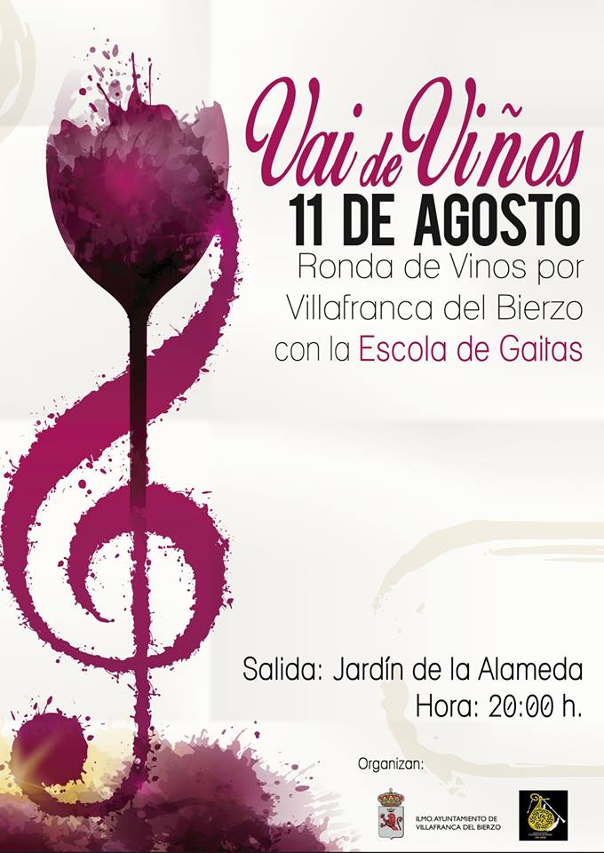20:00h ‘Vaideviños’ Una ruta de vinos por Villafranca acompañados de la Escola de gaitas. Salida desde el Parque de La Alameda.