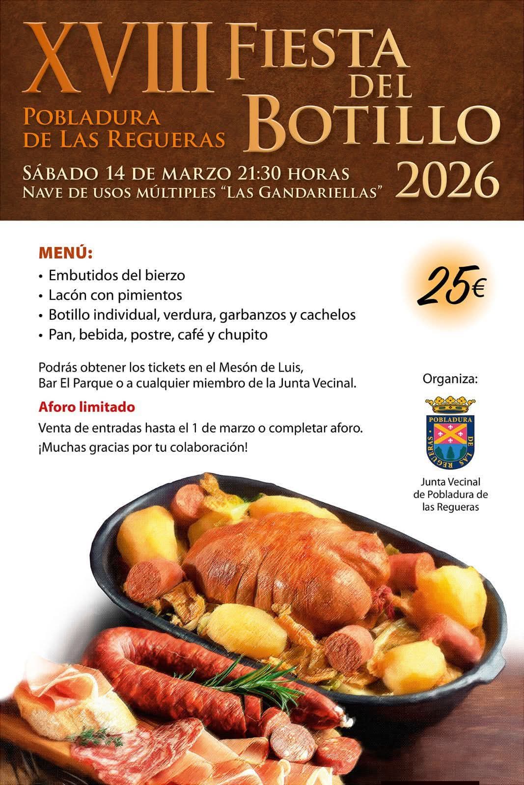 La localidad de Pobladura de las Regueras se prepara para vivir una de sus citas gastronómicas y sociales más esperadas: la XVIII Fiesta Vecinal, que se celebrará el próximo sábado 14 de marzo a las 21:30 horas en la Nave de Usos Múltiples “Las Gandariellas”. El evento, organizado por la Junta Vecinal, reunirá a vecinos y visitantes en torno a una mesa cargada de sabores tradicionales del Bierzo.