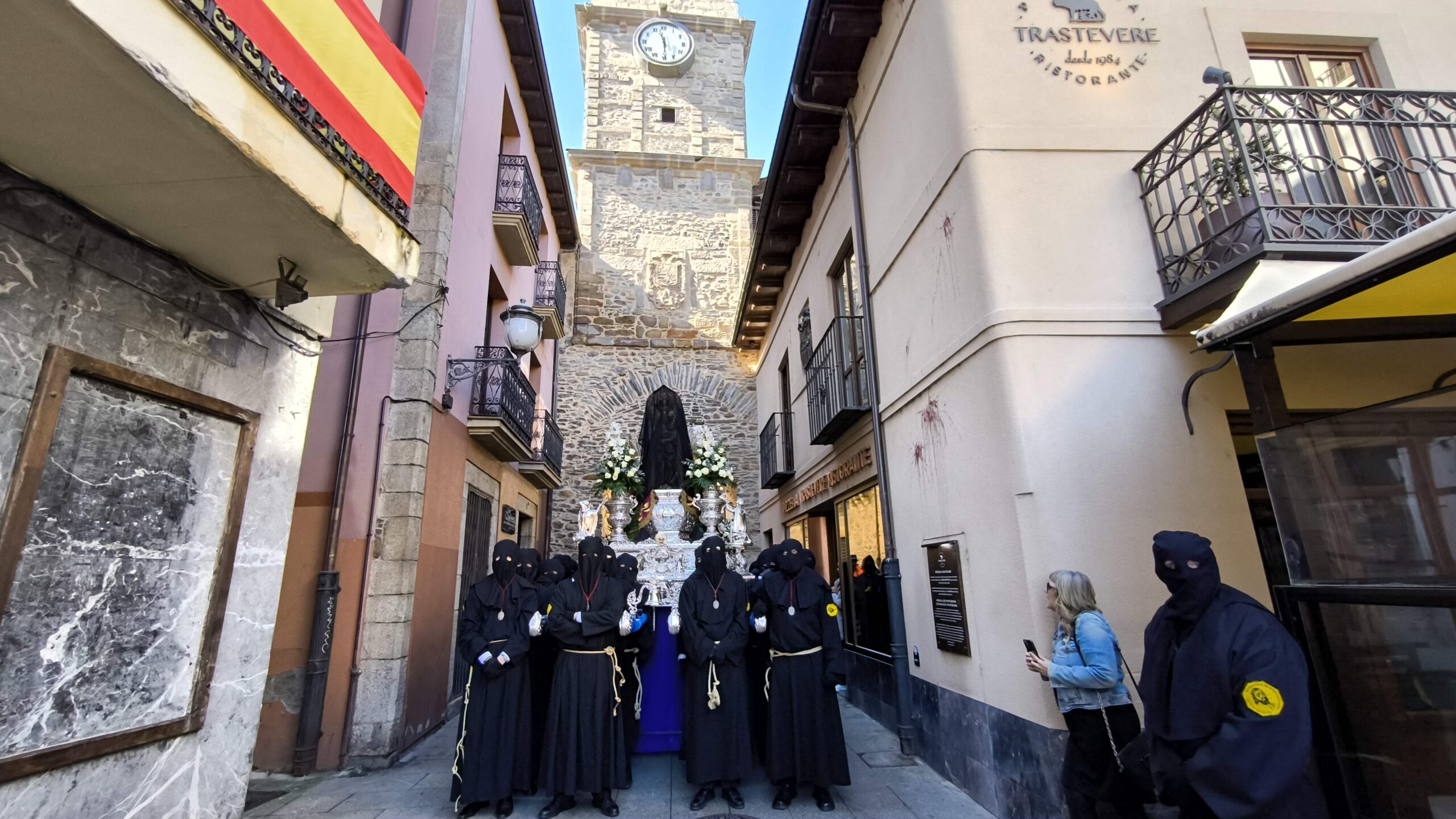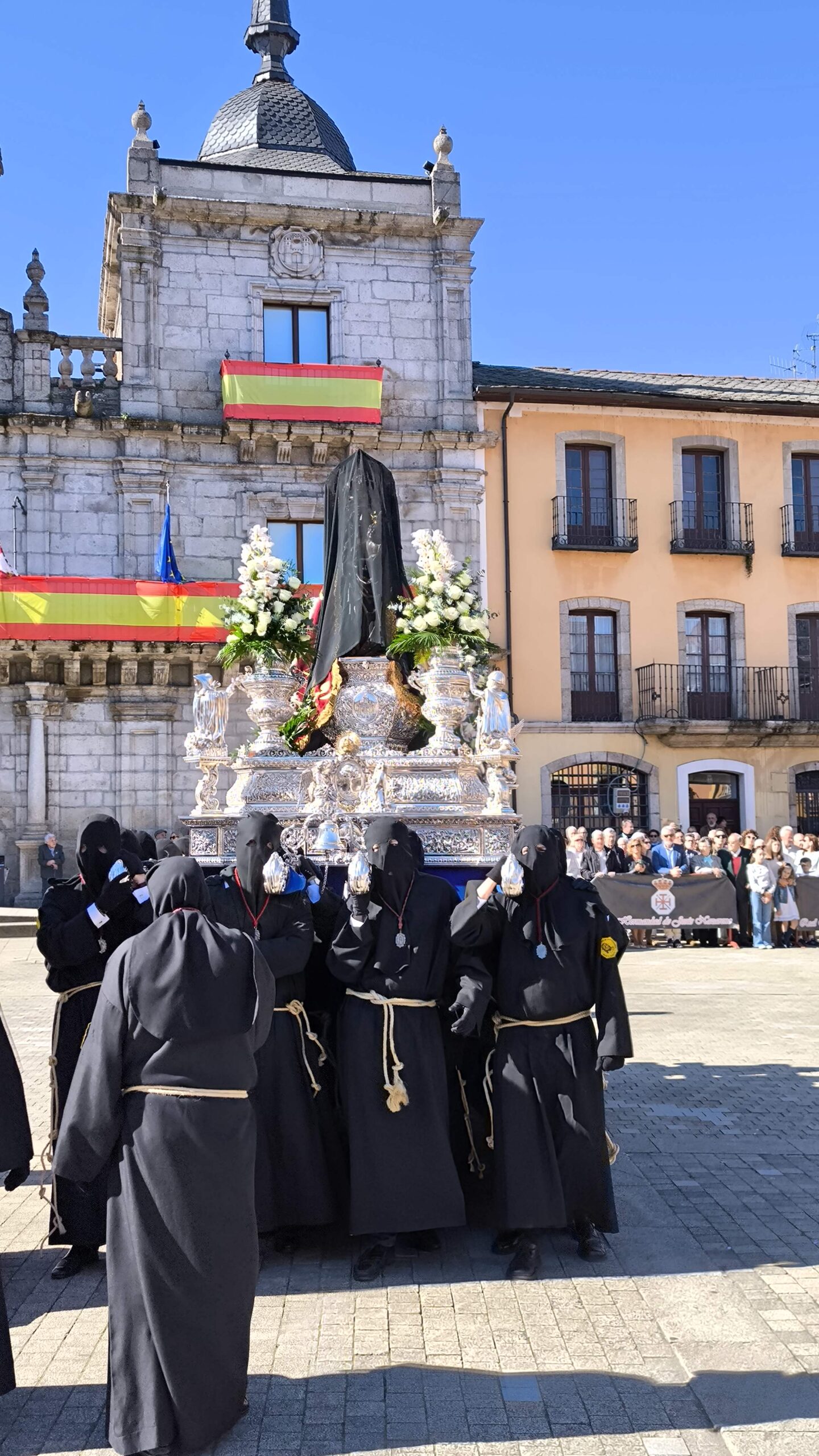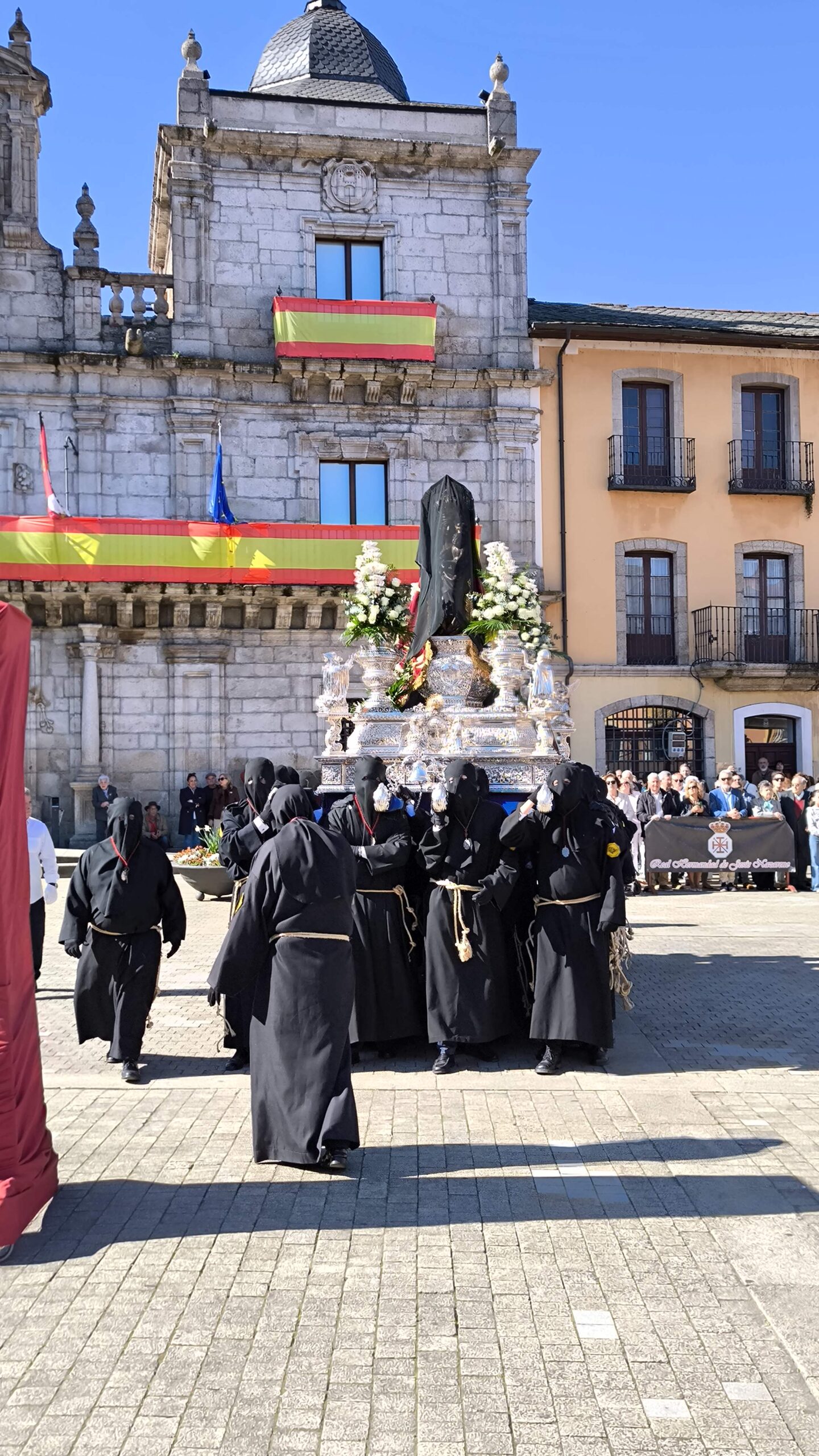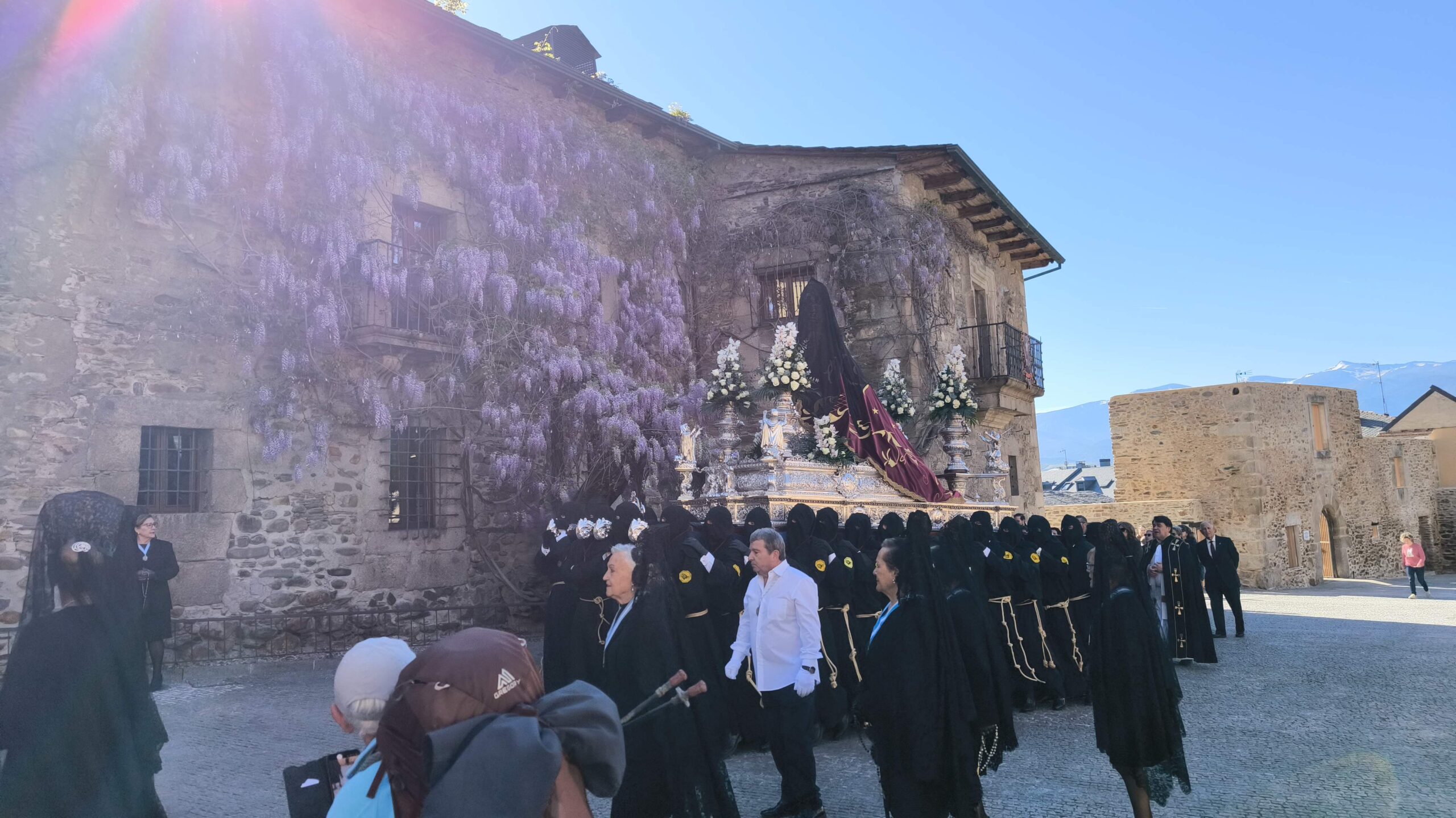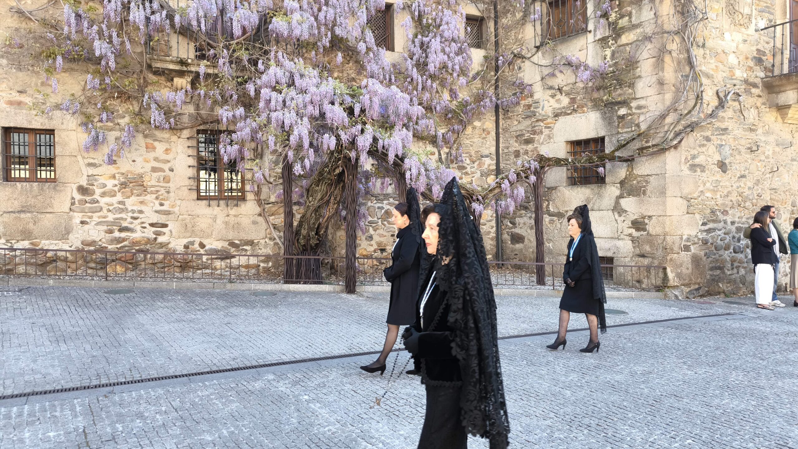 El momento cumbre, y sin duda el más emotivo de la mañana, tuvo lugar en la Plaza del Ayuntamiento. Bajo la mirada atenta de una multitud congregada, se procedió a retirar el manto de luto a la Morenica.