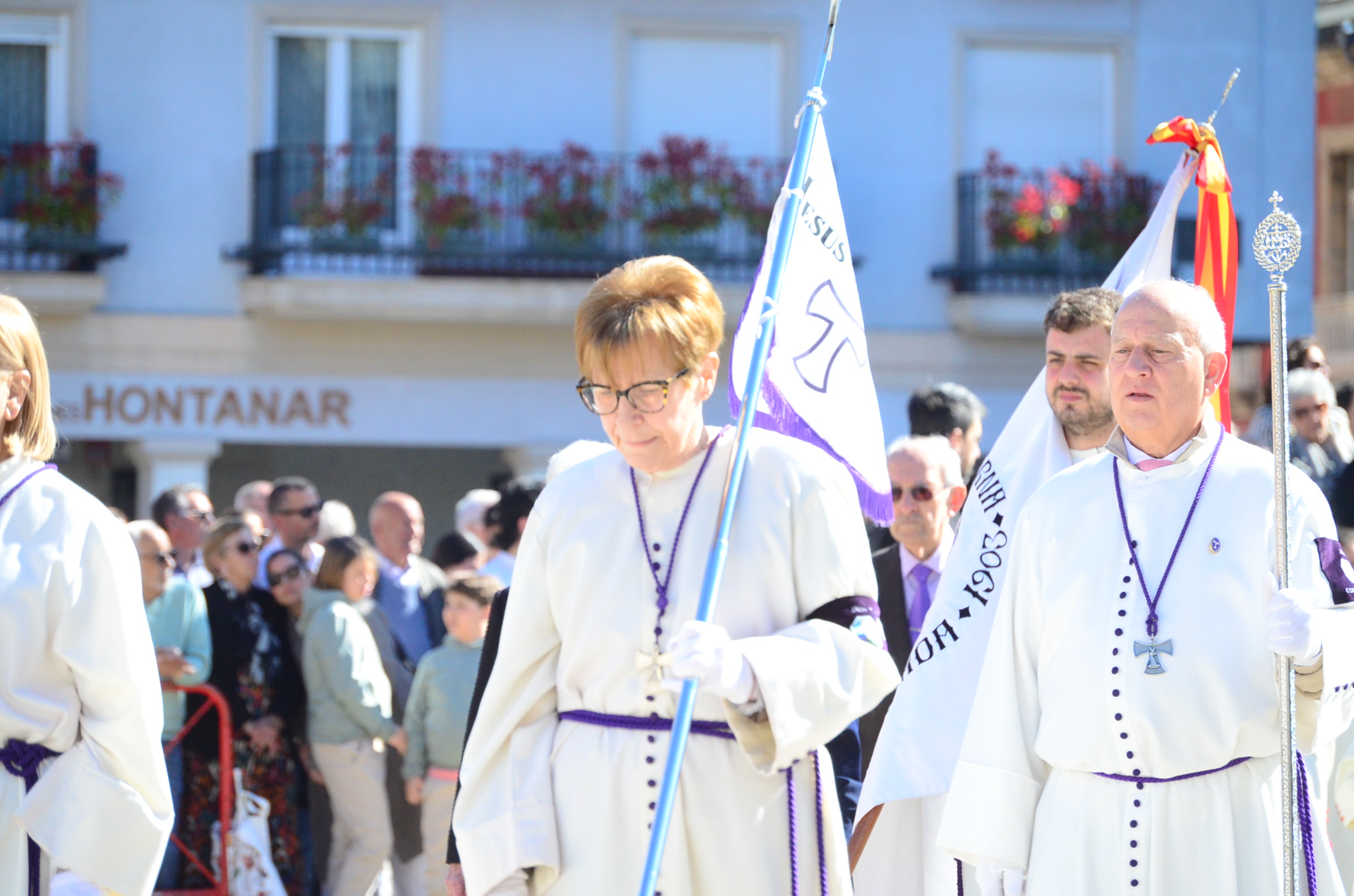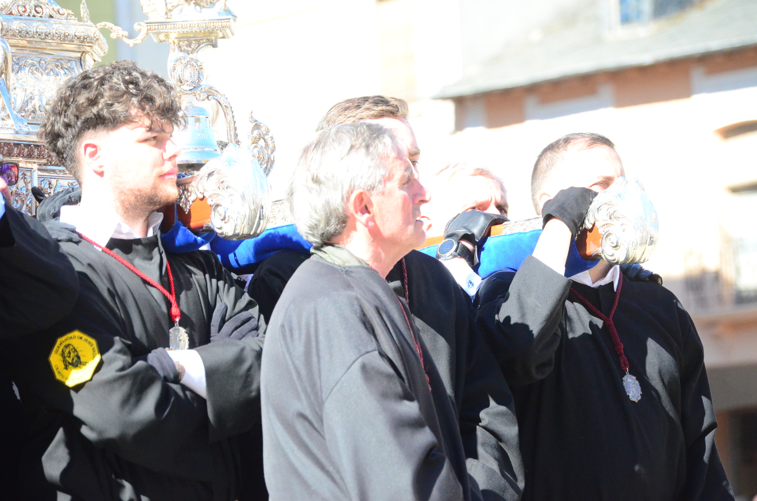 La jornada comenzó puntualmente a las 11:00 horas con una doble comitiva que envolvió el casco antiguo en una coreografía de fe perfectamente coordinada por la Real Hermandad de Jesús Nazareno y la Asociación de Nuestra Señora de la Encina.
