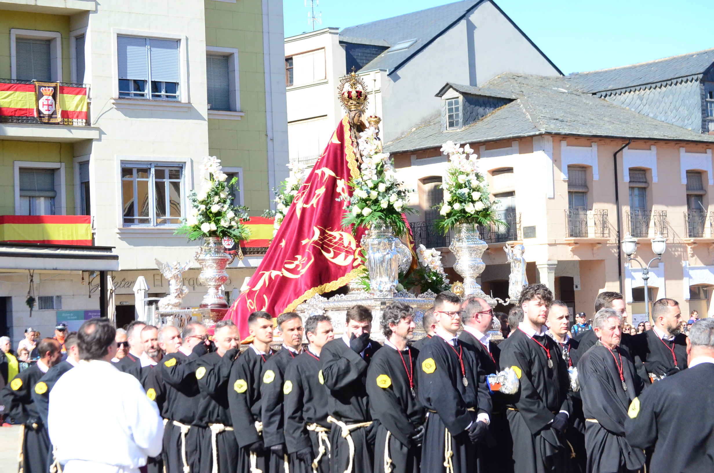 La capital del Bierzo ha despedido este domingo su Semana Santa con el acto más luminoso y esperado de su calendario litúrgico: la Procesión de la Resurrección y el Solemne Encuentro Pascual. Tras días de recogimiento y silencio, la ciudad ha estallado en júbilo para celebrar el punto final de una Pasión que ha vuelto a demostrar su arraigo y esplendor.