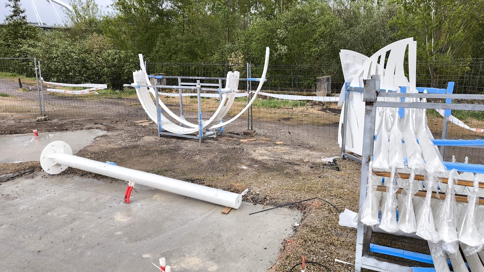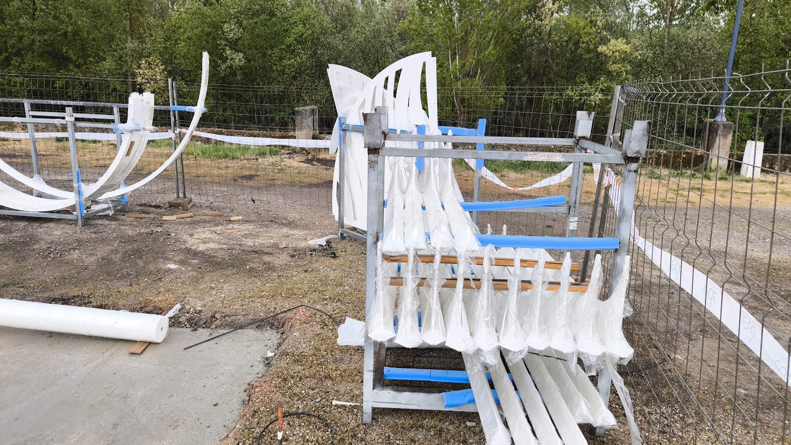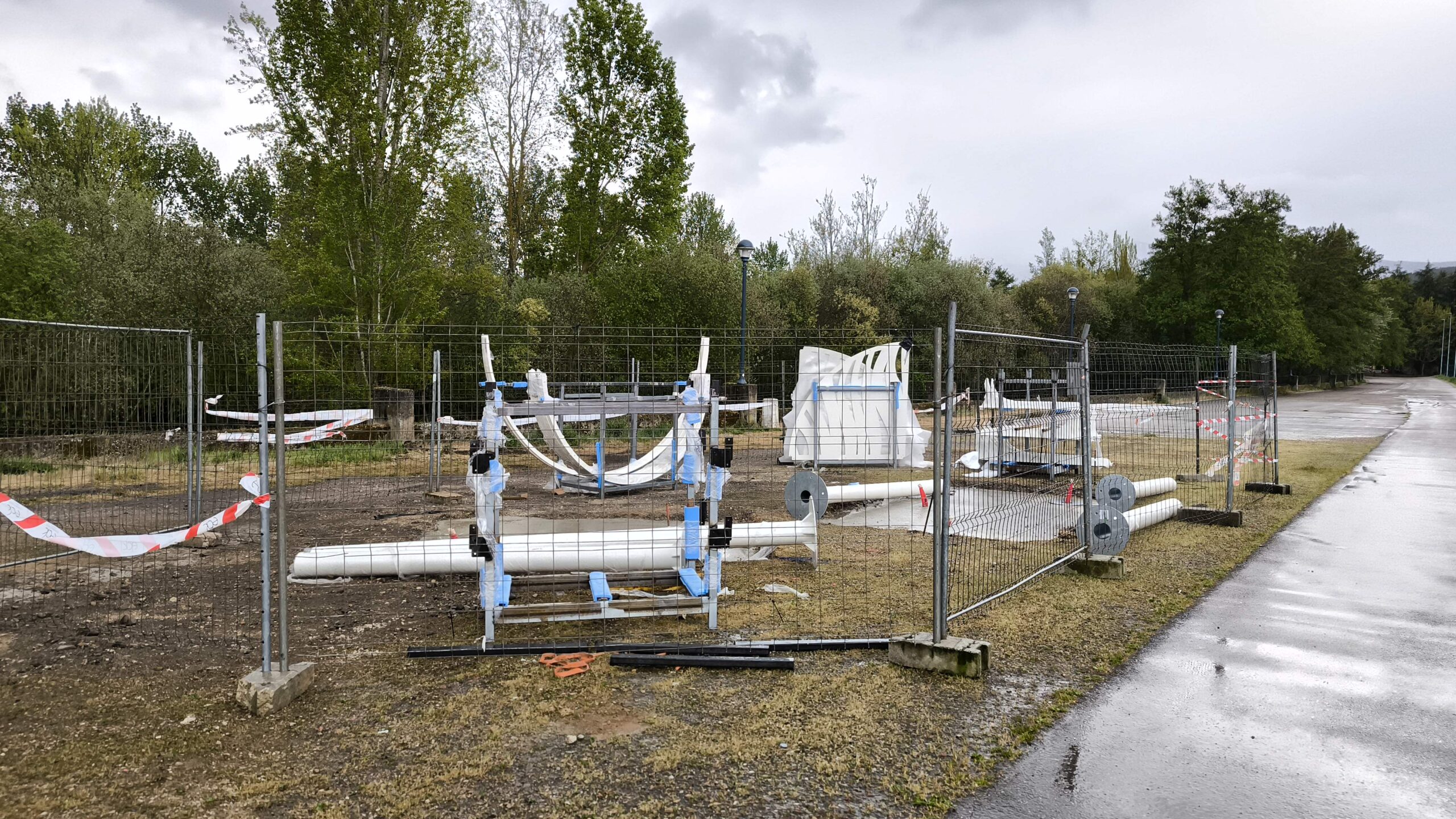 El material metálico que se encuentra ya en el interior de una zona cercada es de color blanco, aunque todavía no se adivina la forma final.