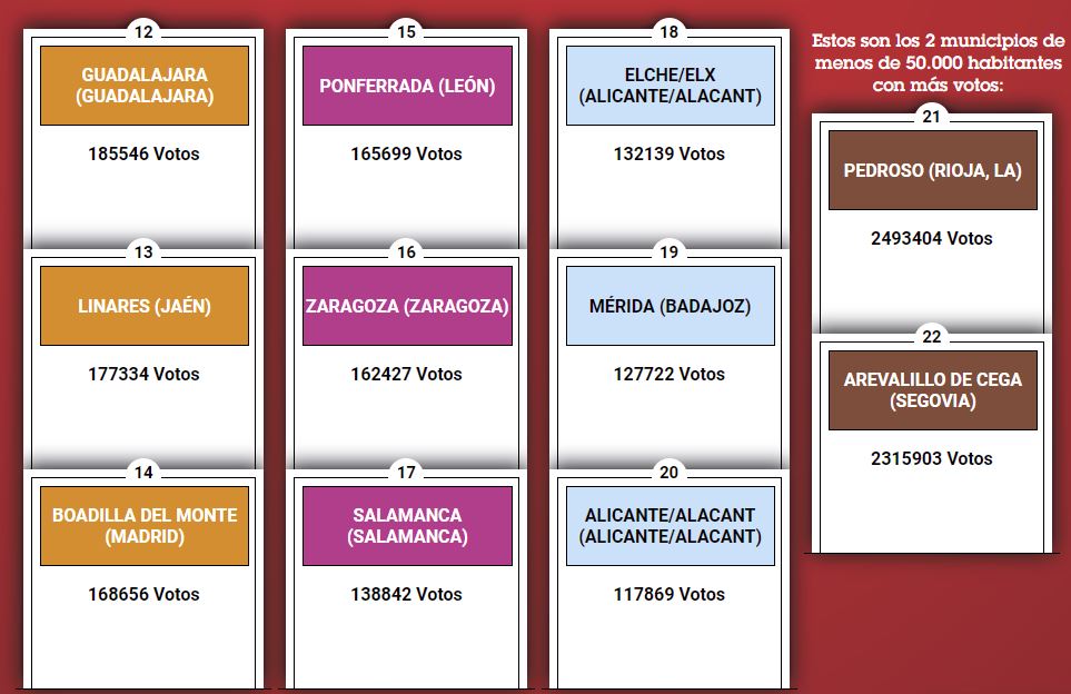 Durante ocho semanas los ciudadanos han podido votar por la ciudad o pueblo que querían que apareciera en este juego de mesa. Este lunes 19 de marzo se han dado a conocer los resultados, coincidiendo con el Día Mundial de Mr. Monopoly. ponferrada será una de las tres casillas moradas. El resto de ciudades puedes consultarlas en la imagen adjunta.