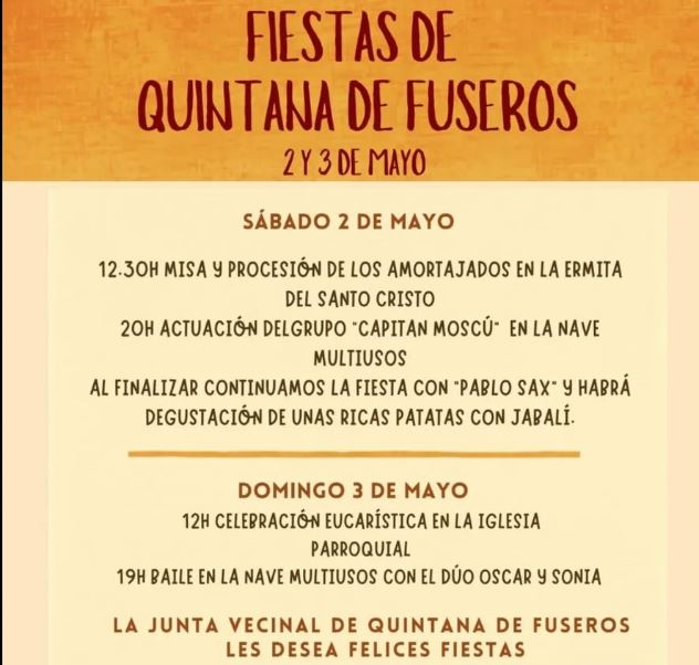 La localidad de Quintana de Fuseros, en el municipio de Igüeña, se engalana para celebrar sus tradicionales fiestas en honor a la Santa Cruz 2026. El programa, que se desarrollará durante el primer fin de semana de mayo, apuesta por la convivencia vecinal, la misa y la famosa procesión de los amortajados y un cartel musical de primer nivel que atraerá a visitantes de toda la comarca del Bierzo y el Alto Sil.