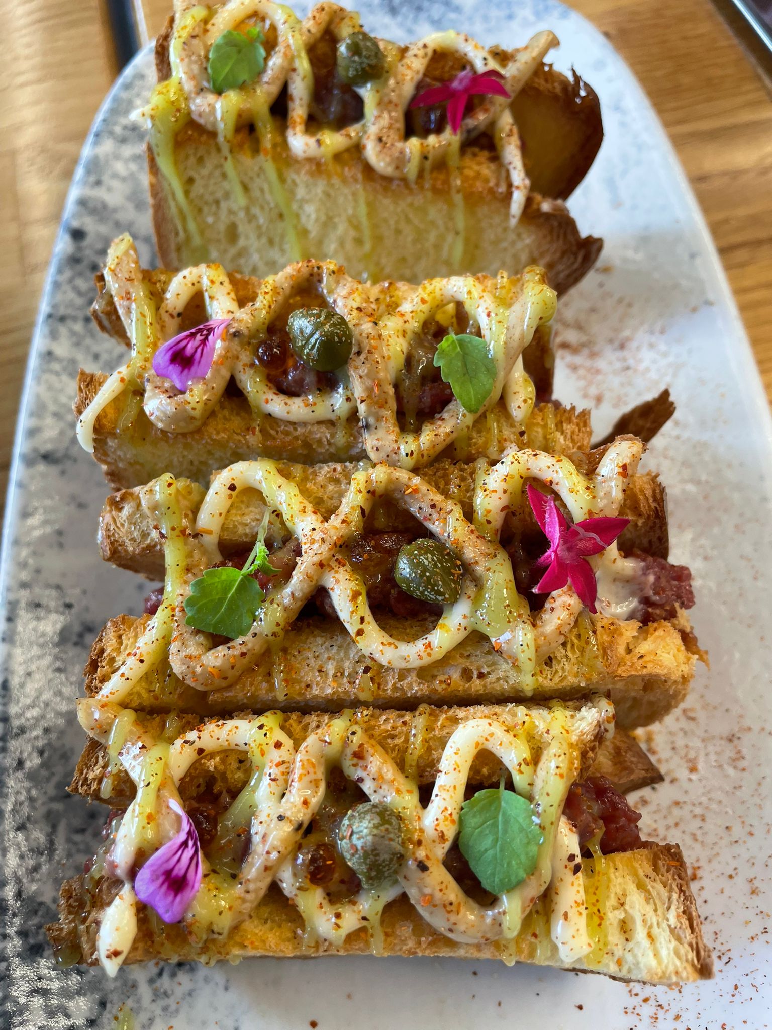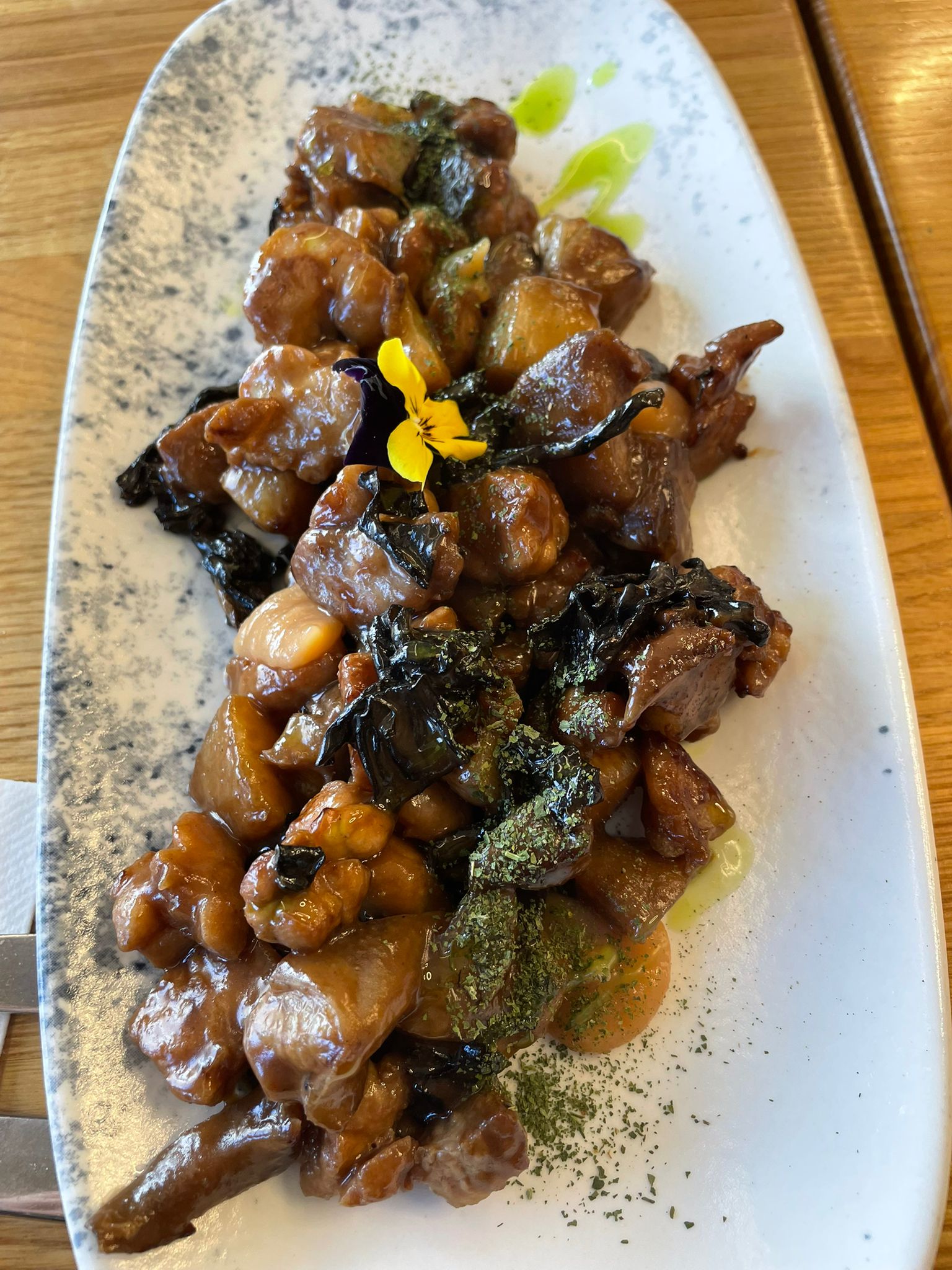 Por mencionar algún plato que me ha sorprendido son las croquetas de Empanada con un velo de papada, o las mollejas con morro un plato que gana presencia en la carta y por algo será, o los tacos de tartar o la manera de preparar el plato de lubina a la parrilla con la base de un risotto con fuerza marina. Hecho de menos aquel plato de corvina con toque cítrico, carne roja muy jugosa. Excelente estética de los platos así como el servicio.