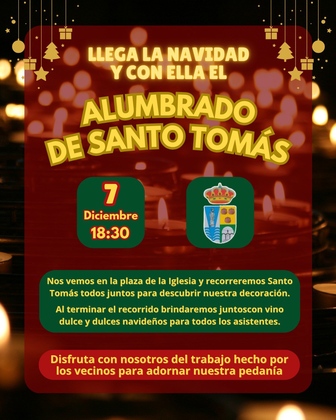 Hoy domingo 7 de diciembre a las 18:30, los vecinos del pueblo de Santo Tomás de las Ollas se reunieron en la plaza de la Iglesia para dar paso al encendido de la iluminación que han realizado con mucho cariño entre todos los vecinos, recorrieron Santo Tomás todos juntos para descubrir la decoración navideña.