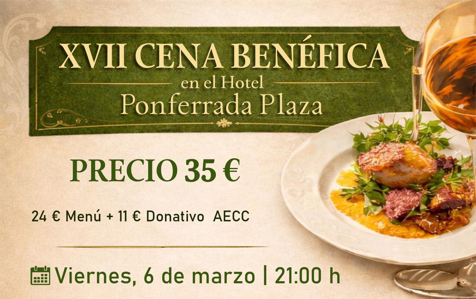 La Junta Local de Ponferrada de la Asociación Española Contra el Cáncer ha anunciado que ya se encuentran a la venta las últimas entradas para su tradicional Cena Solidaria. El evento, que se ha consolidado como una cita imprescindible en el calendario social de la ciudad, tendrá lugar este viernes, 6 de marzo, a las 21:00 horas en el Hotel Ponferrada Plaza.