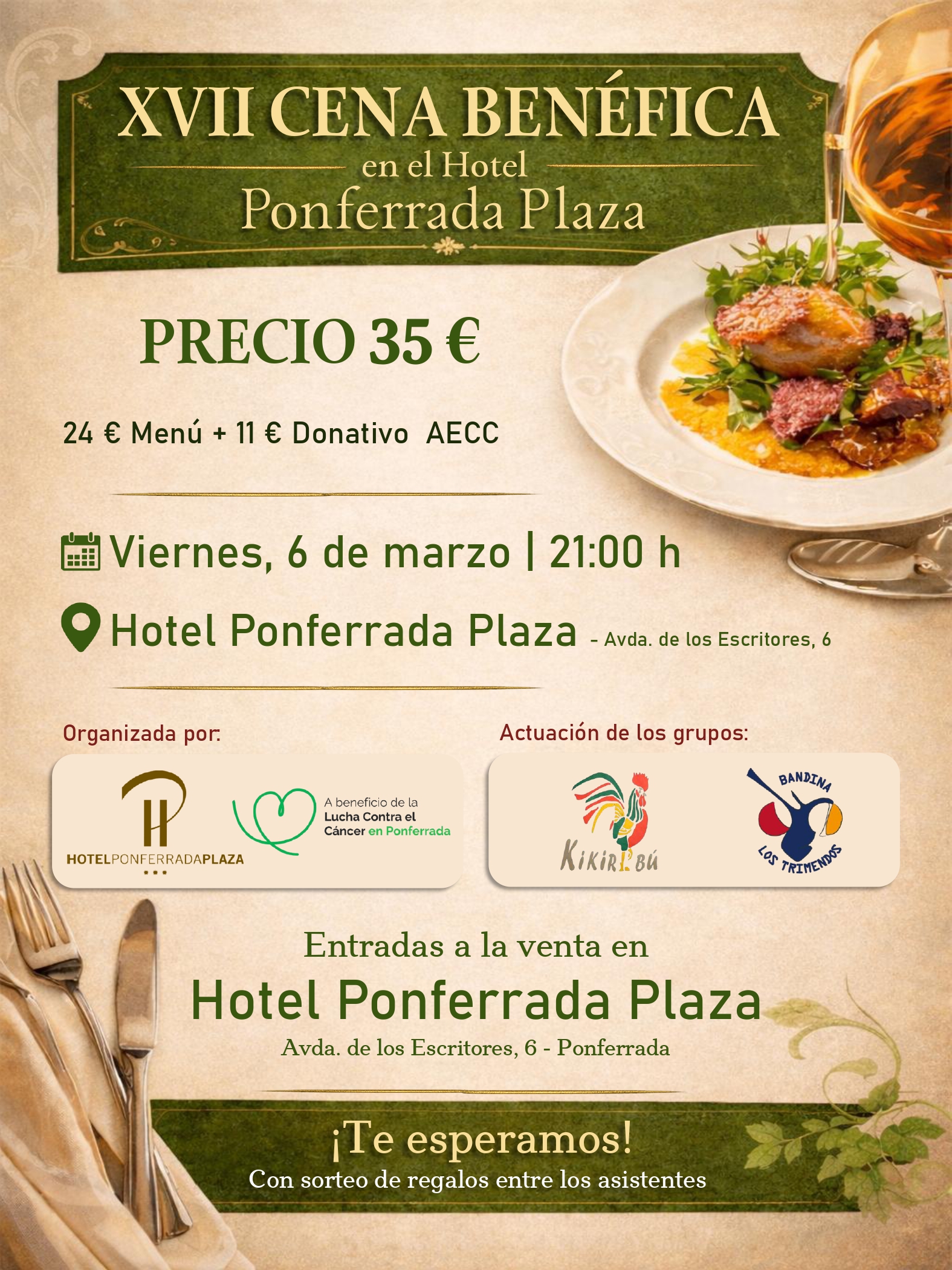 Las personas interesadas en asistir pueden adquirir los últimos pases directamente en la recepción del Hotel Ponferrada Plaza hasta completar el aforo disponible.