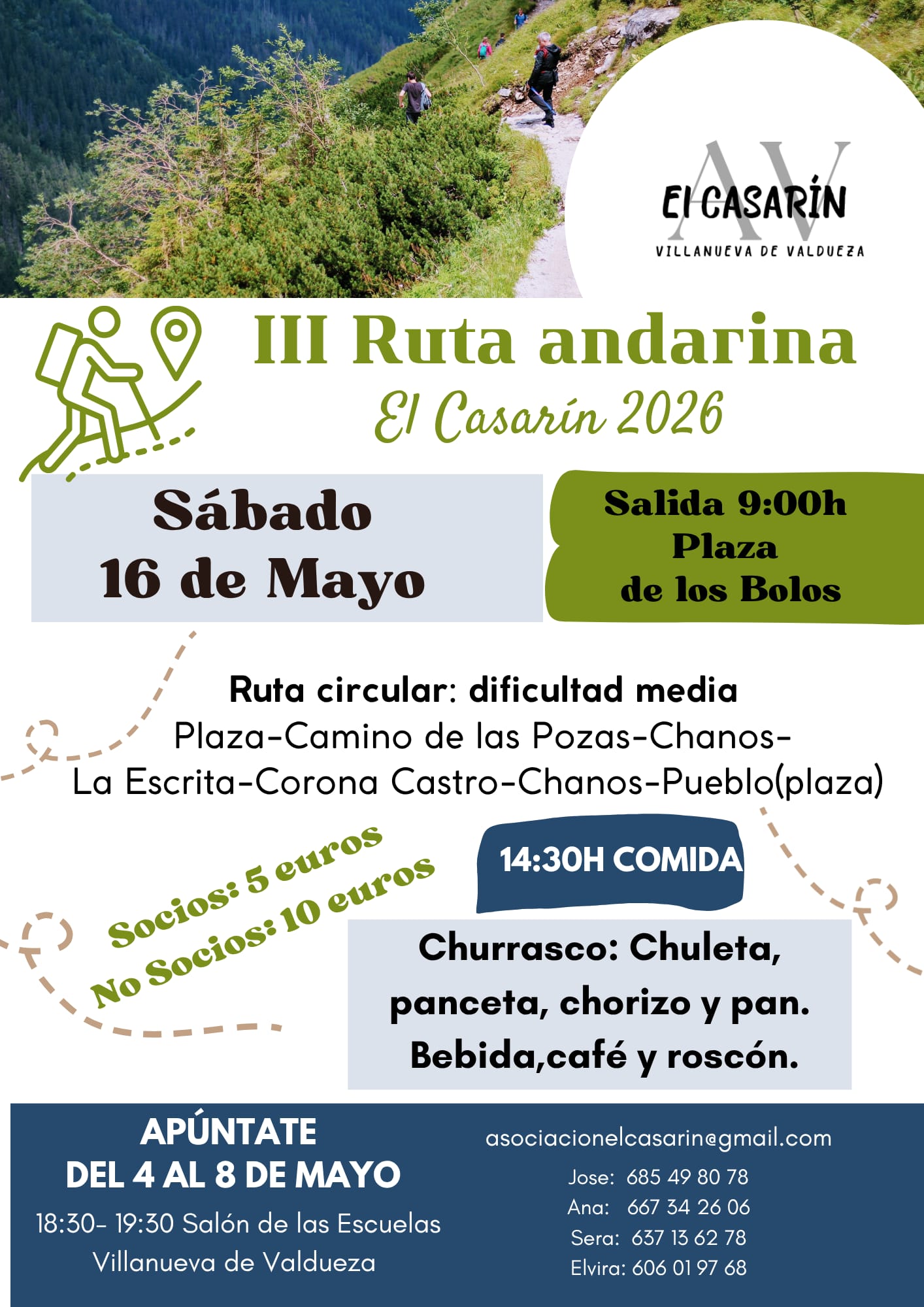 La asociación El Casarín ha anunciado oficialmente la celebración de su tercera ruta de senderismo circular, una cita que ya se está convirtiendo en una tradición para los amantes del deporte al aire libre y la convivencia vecinal en Villanueva de Valdueza.